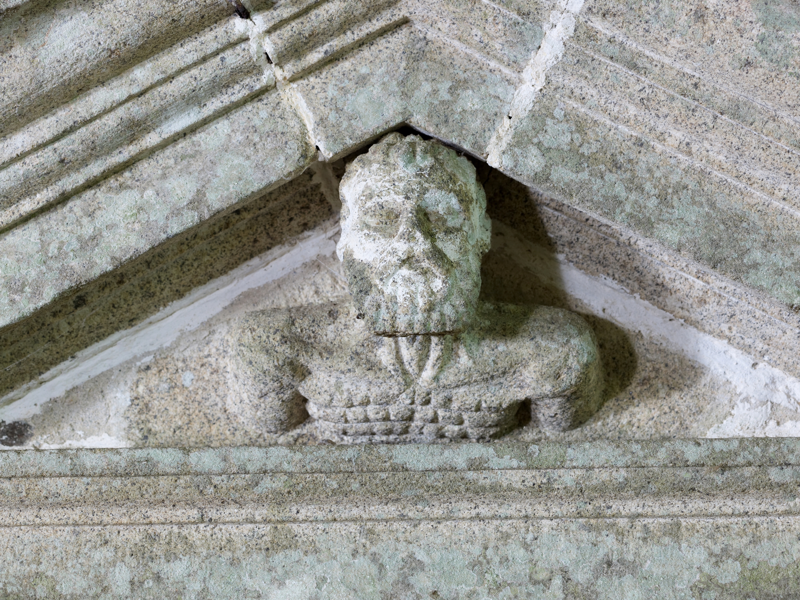 Ploubezre, chapelle de Kerfons : vue intérieure, chapelle latérale sud, détail de l'autel de style RenaissanceImmatriculation