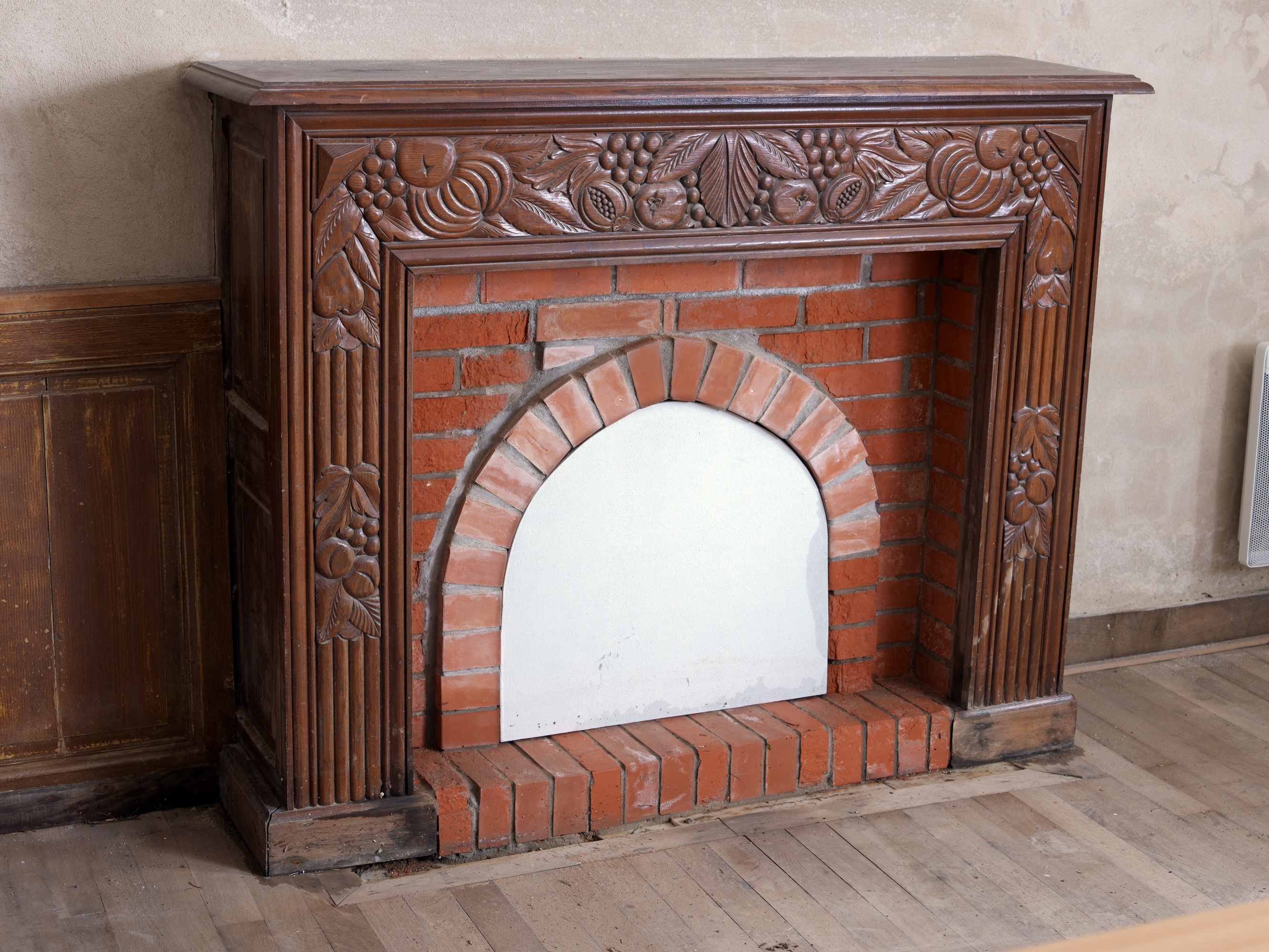 Logement du meunier. Cheminée du rez-de-chaussée. Décor sculpté probablement réalisé par l'atelier Savina de Tréguier, 2e quart 20e siècleImmatriculation