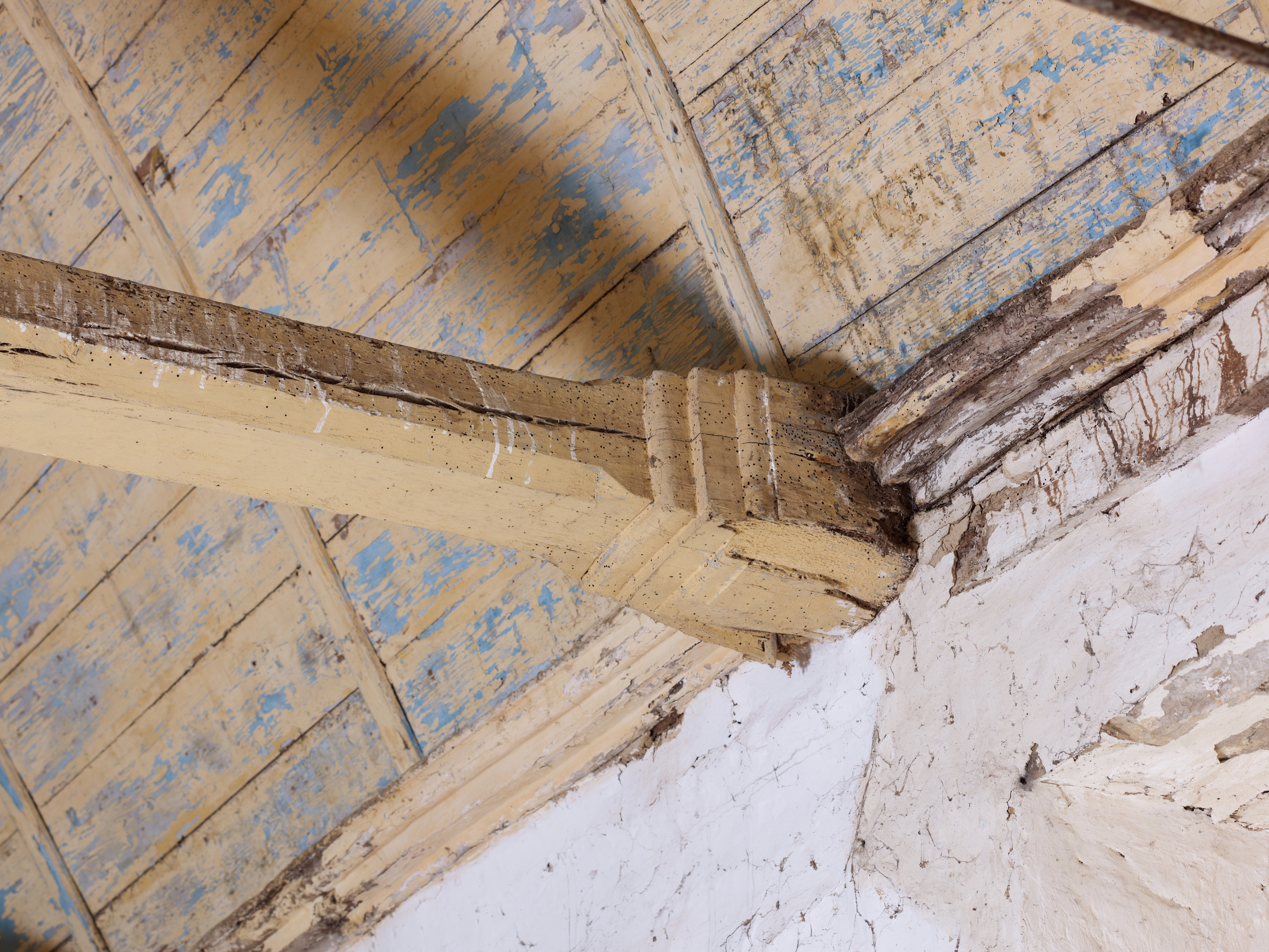 Plafond. Détail d'une sablière et d'un entraitImmatriculation