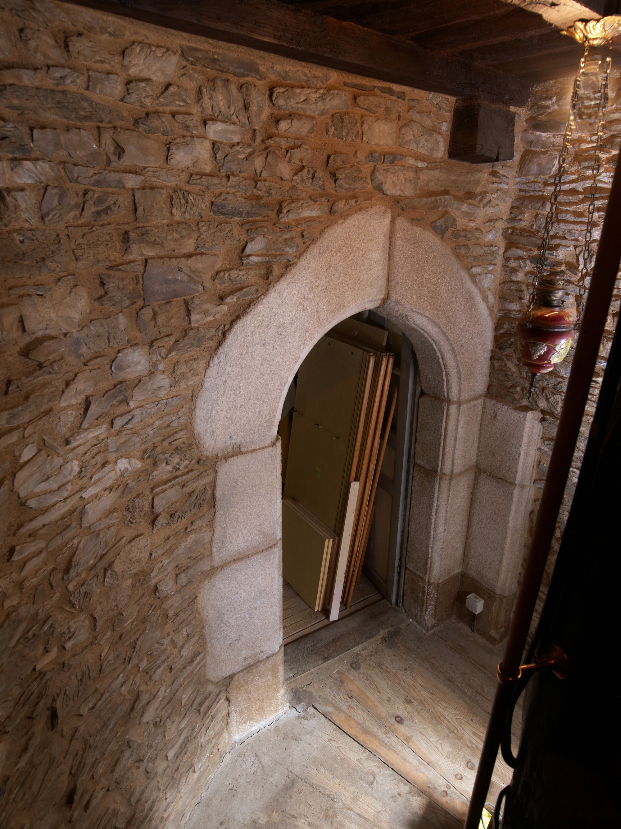 Tour d'escalier. Détail du palier avec porte de chambreImmatriculation