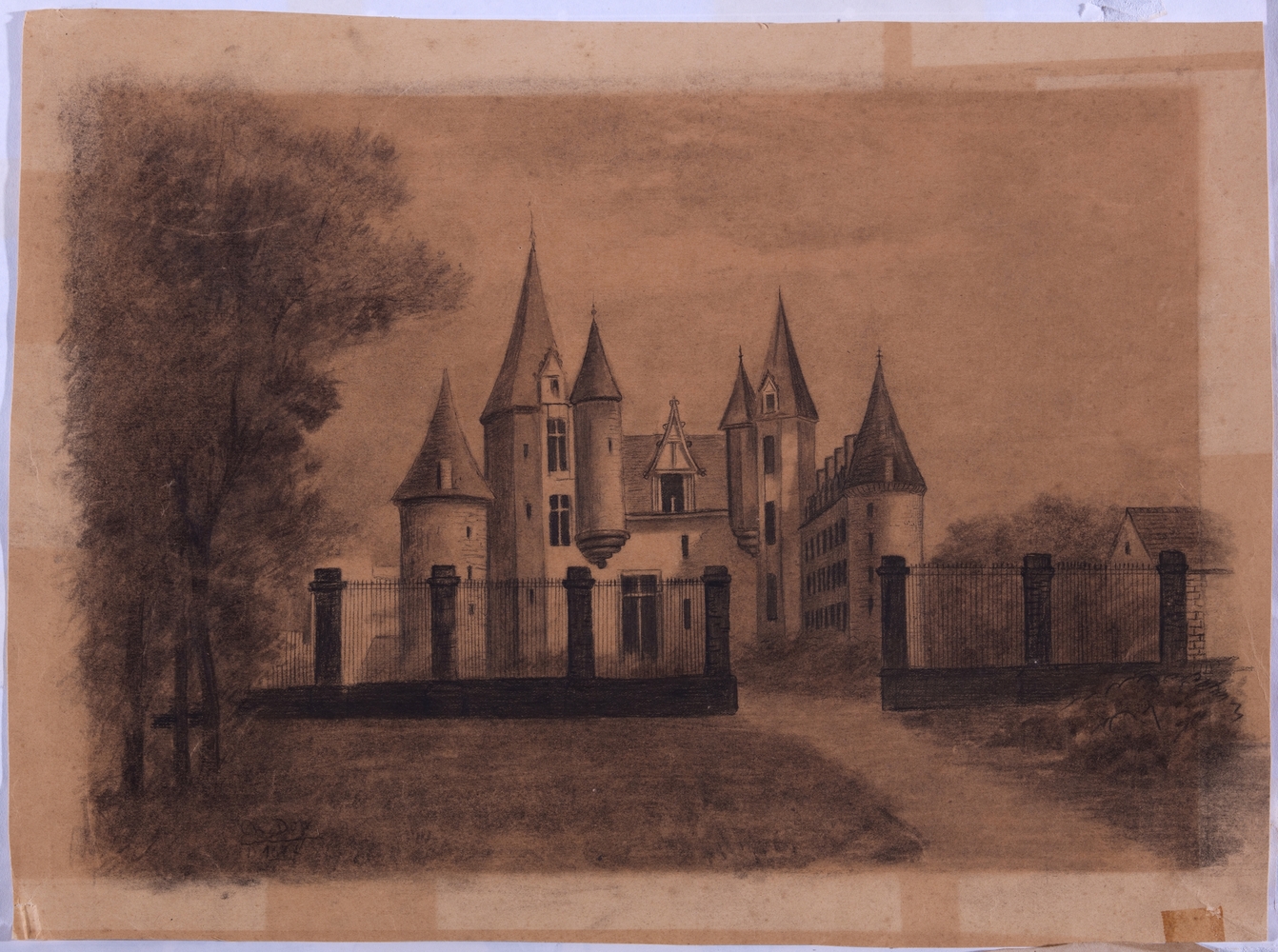 Ploubezre : château de Kergrist, vue générale des façades nord depuis l'avenue (collection Régis Huon de Penanster)Immatriculation
