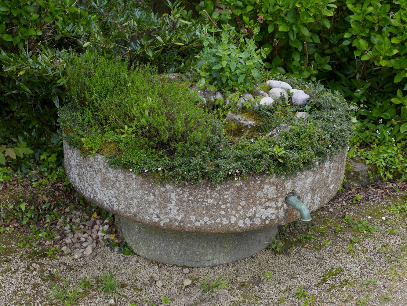 Ploubezre : vasque située dans la cour des dépendances du château de Kergrist. Elle était alimentée par le capatage des eaux à KerauzernImmatriculation
