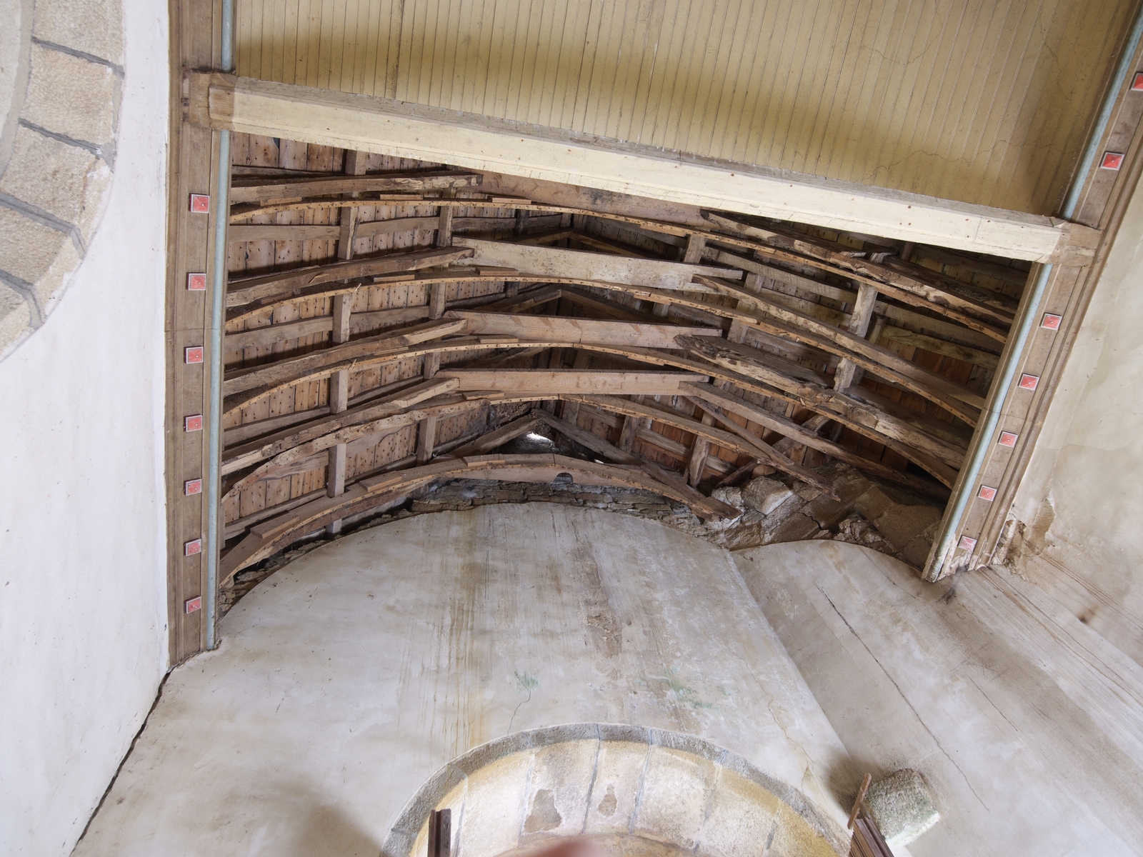 Ploubezre, Runfao : chapelle Saint-Fiacre, charpente et sablières. L'état sanitaire est alarmantImmatriculation