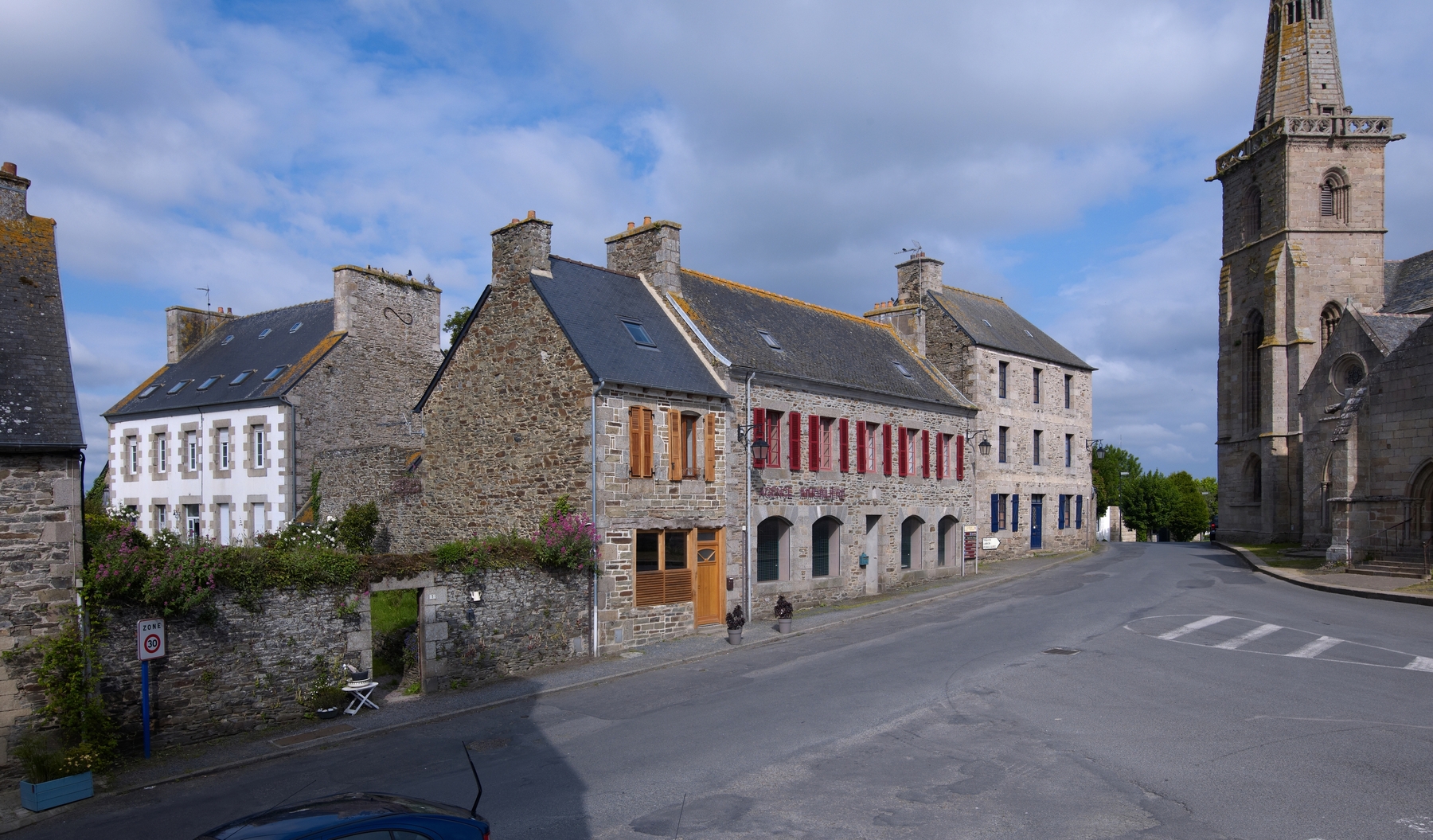 Place de l'Eglise. Presbytère et alignement de maisons. Vue générale sud-estImmatriculation