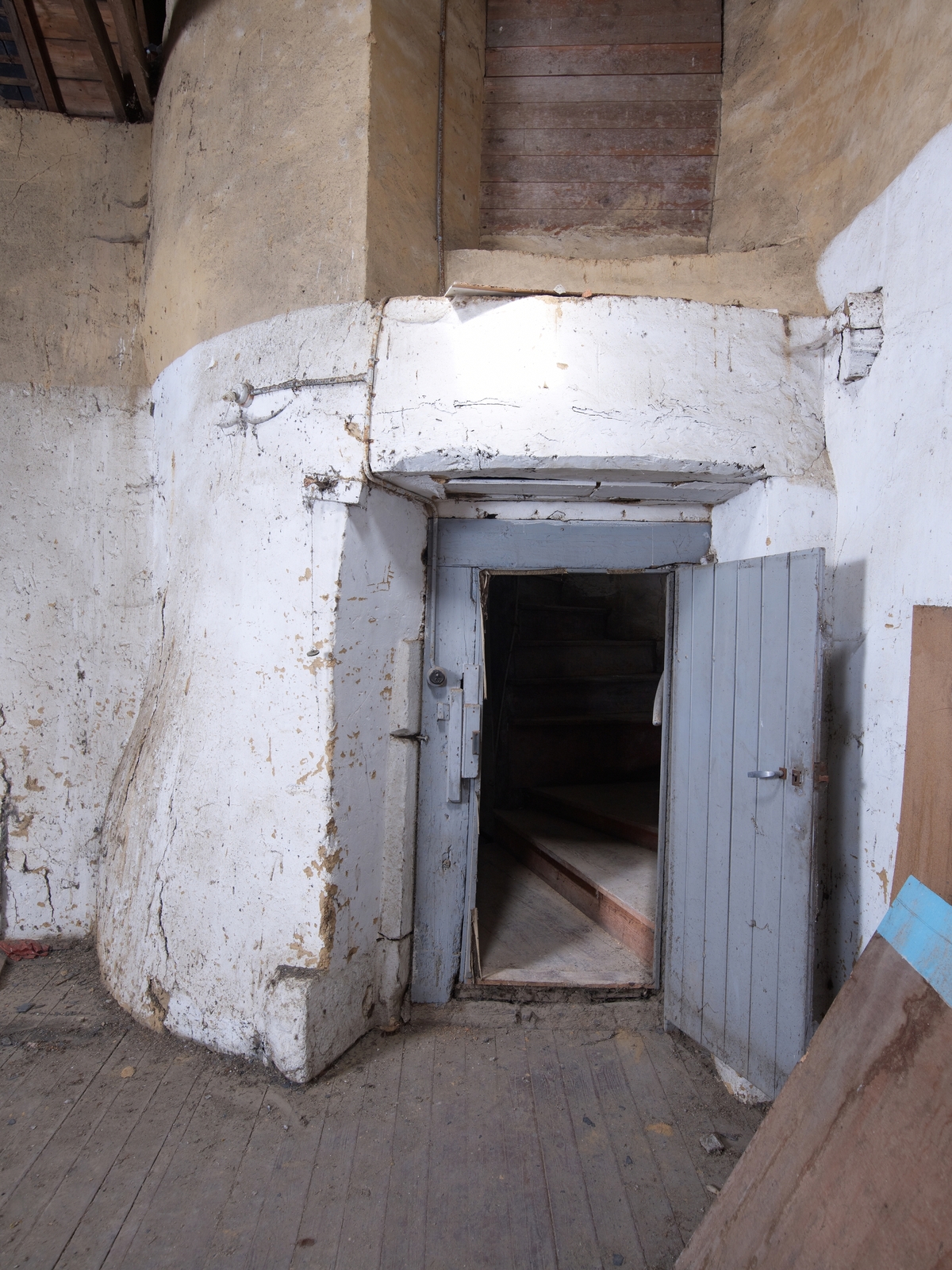 Deuxième étage. Pièce arrière donnant sur la cour. Détail de la superposition des portes du deuxième étage et du comble ouvrant sur la tour d'escalierImmatriculation