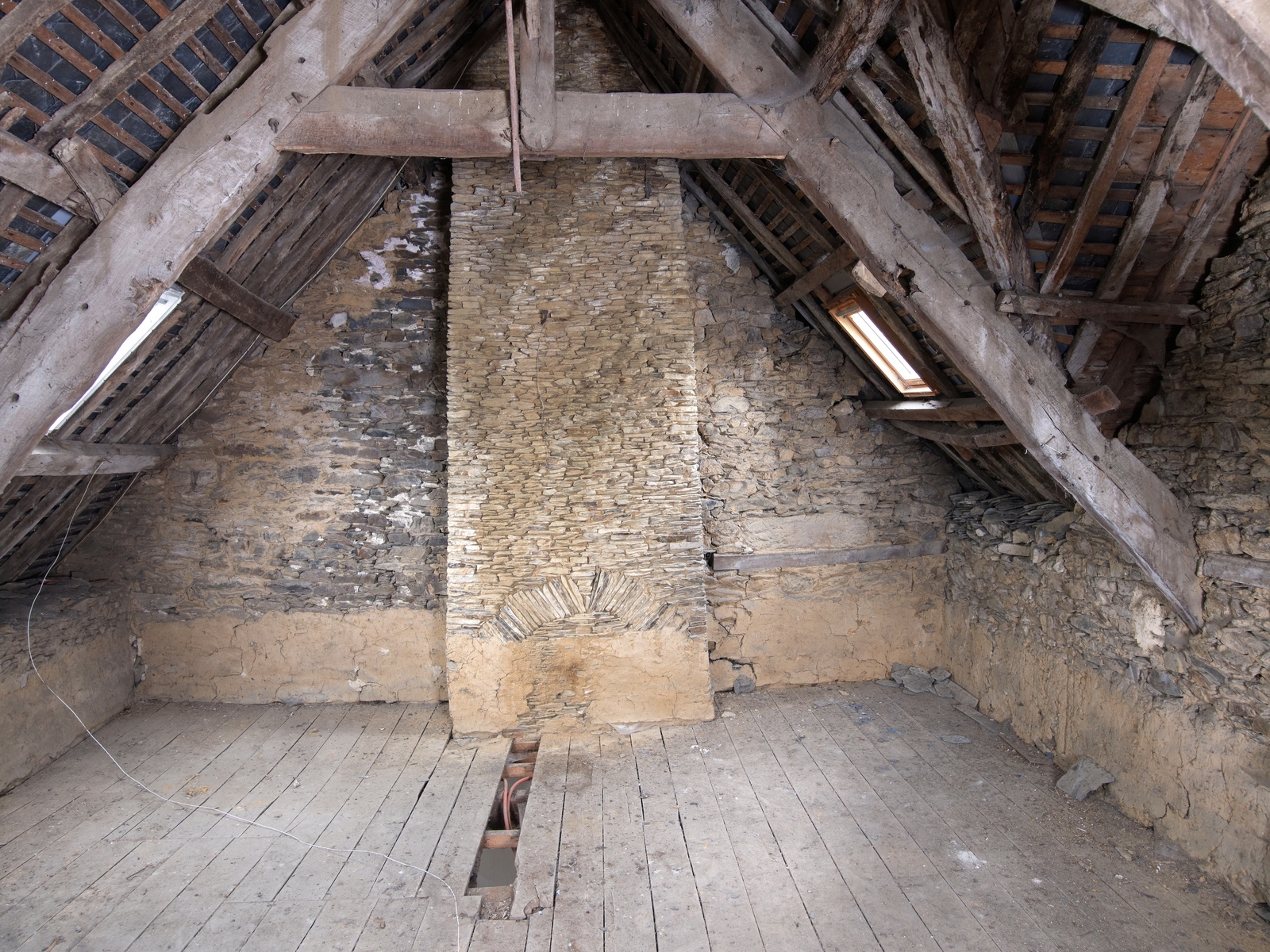 Combles. Charpente et conduit de cheminéeImmatriculation