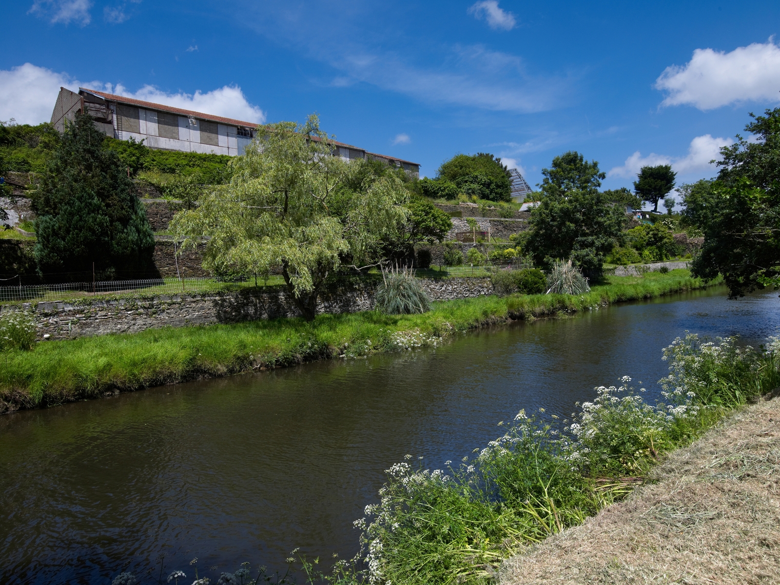 Langoat en limite de La Roche Derrien, écart de Saint Yves / Chef du Pont : terrasses étagées de l'ancienne usine Thas (vue générale depuis La Roche-Derrien). Au premier plan : la JaudyImmatriculation
