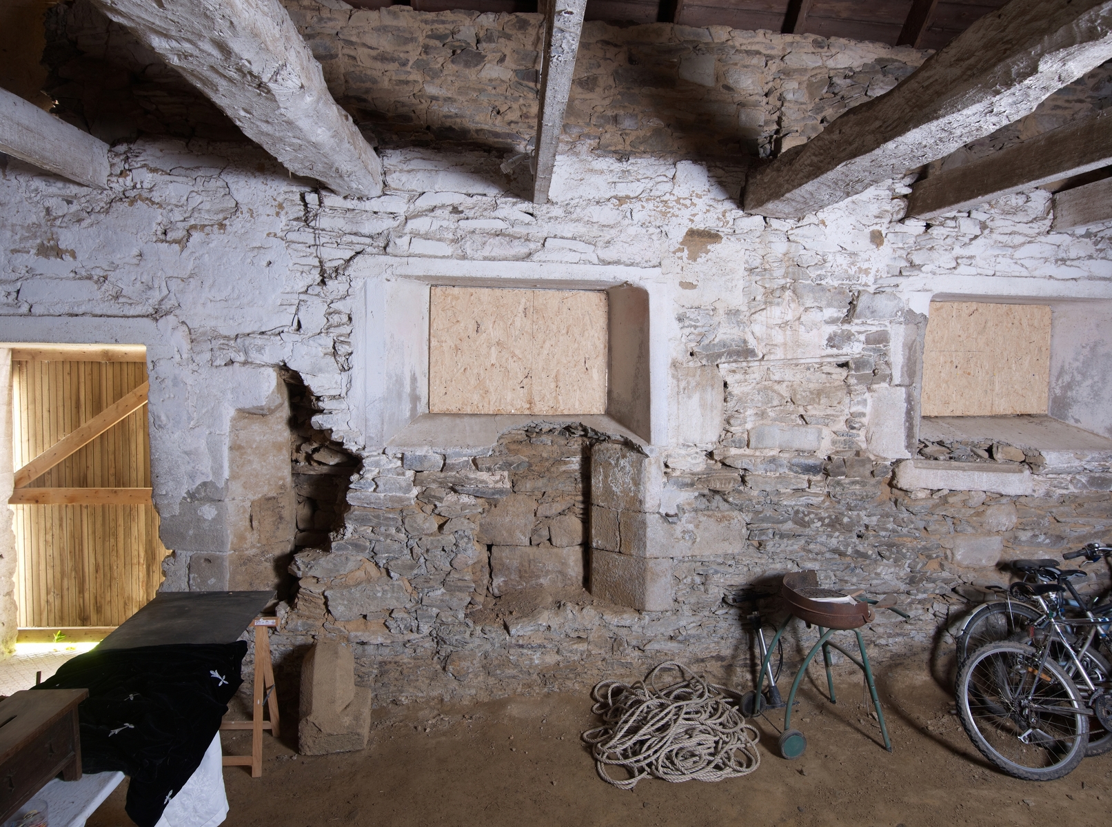 Aile sud construite en retour d'équerre du logis-porte. Ancienne salle. Détail de la cheminéeImmatriculation