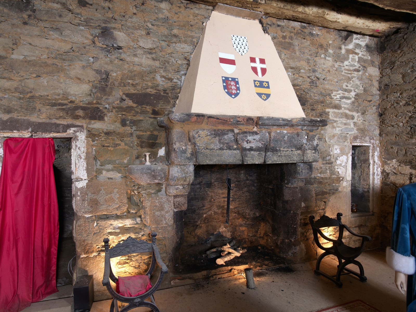 Logis-porte. Rez-de-chaussée. Salle basse située au nord. Cheminée encadrée par un placard mural et par la porte du réduit destiné aux archivesImmatriculation