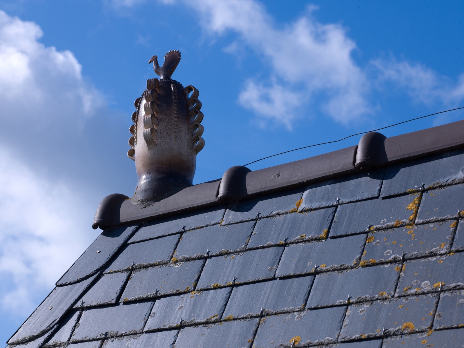 Toit. Détail d'un épi de faïtage en terre cuiteImmatriculation