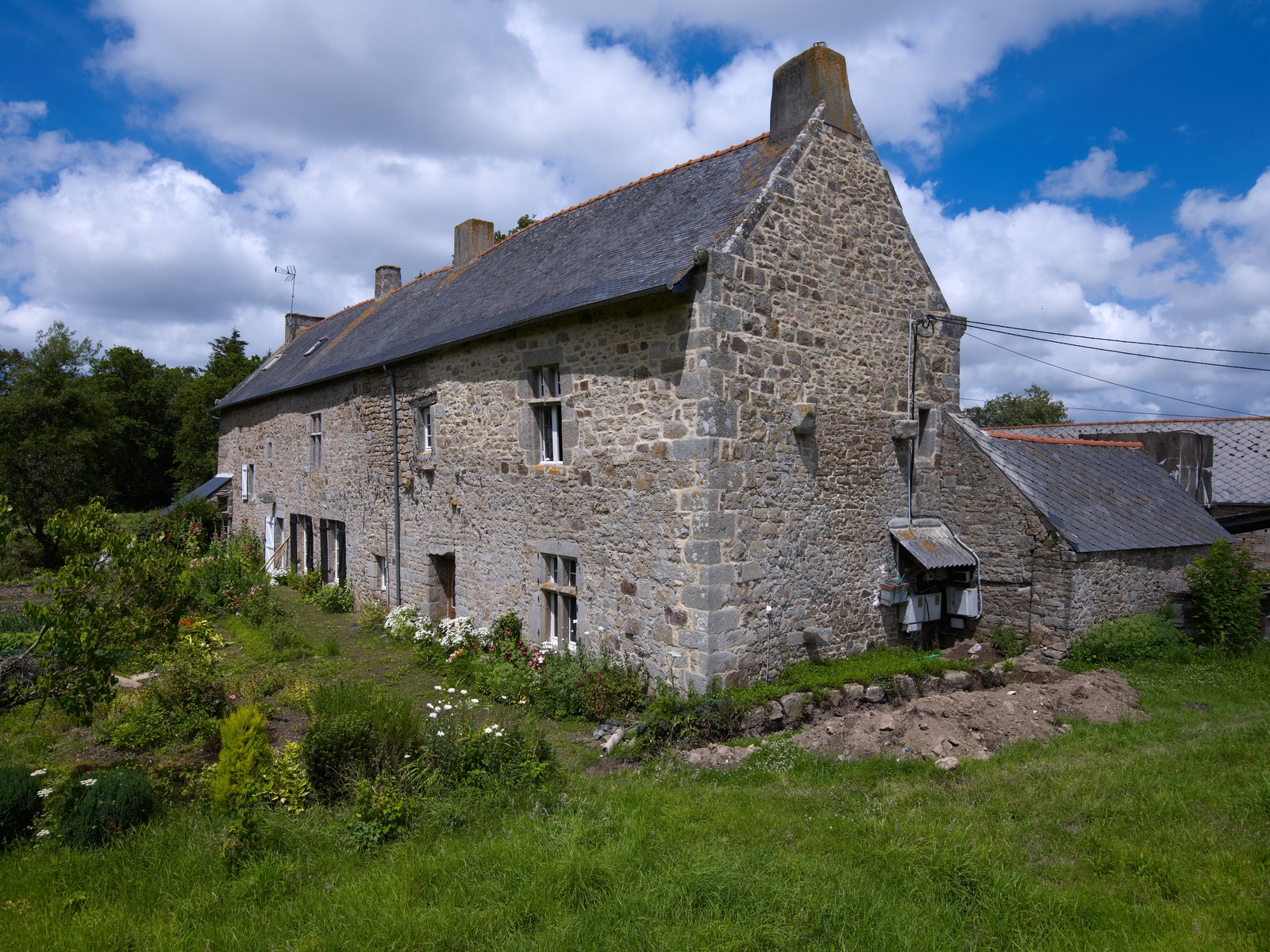 Ploubezre, Le Launay : manoir, élévation postérieure orientée vers l'ouest-sud-ouest. Elle a conservé quelques fenêtres à meneauxImmatriculation