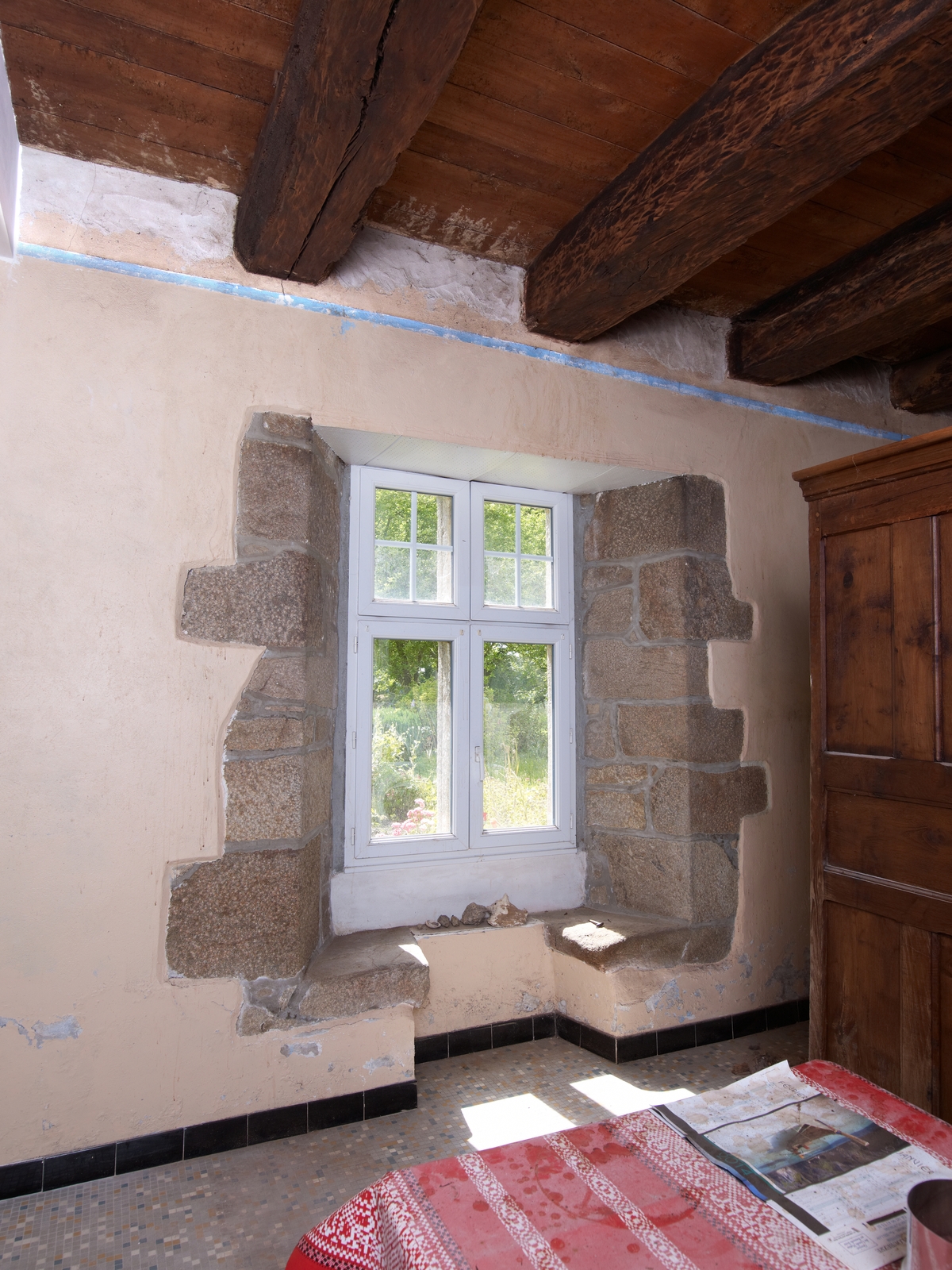 Ploubezre, Le Launay : manoir, rez-de-chaussée, extrémité sud, fenêtre à coussièges donnant vers l'estImmatriculation