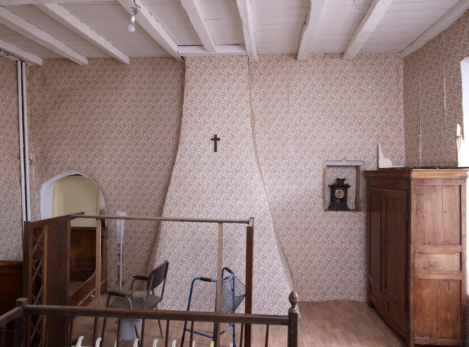 Ploubezre, Le Launay : manoir, extrémité sud, étage. La porte devait être accessible par une tour ou galerie hauteImmatriculation