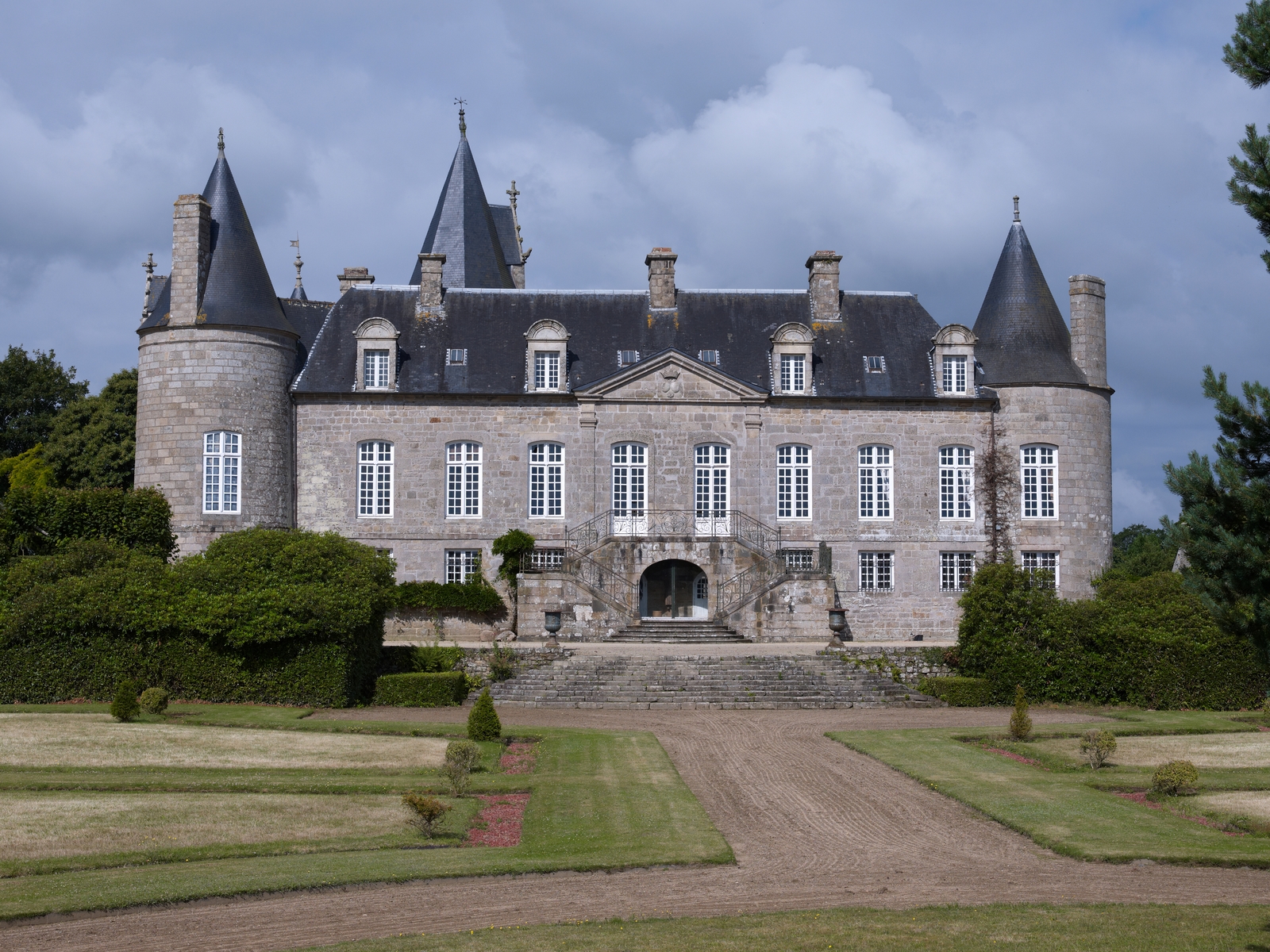 Ploubezre : château de Kergrist, élévation orientale sur le jardin, vue générale depuis l'estImmatriculation