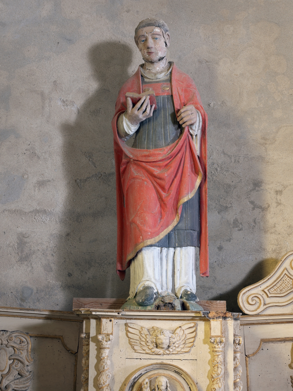 Ploubezre, Kerauzern : chapelle Notre-Dame de Kergrist, vue intérieure, statue de saint YvesImmatriculation