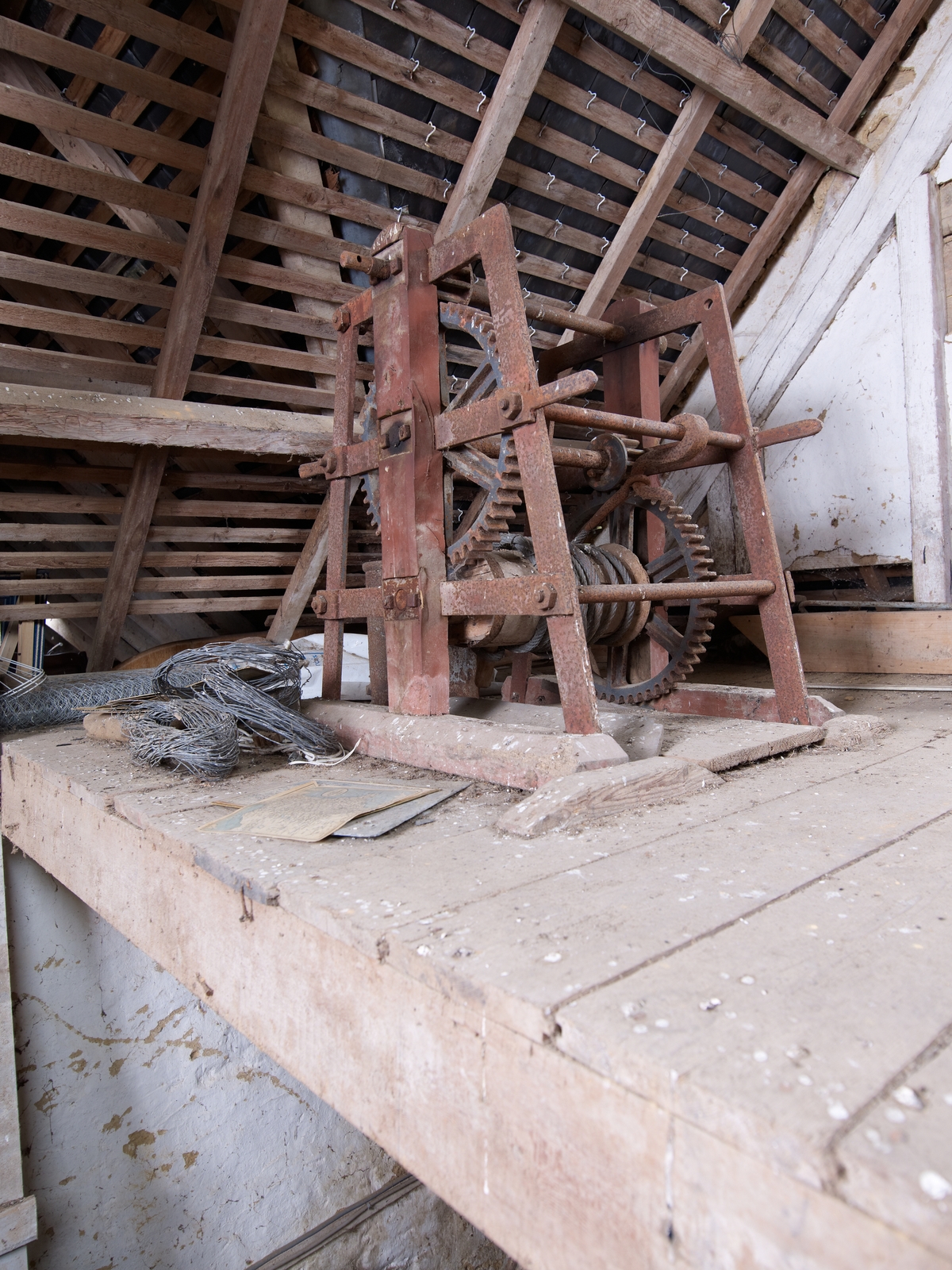 Vue intérieure, treuil servant à monter les sacsImmatriculation
