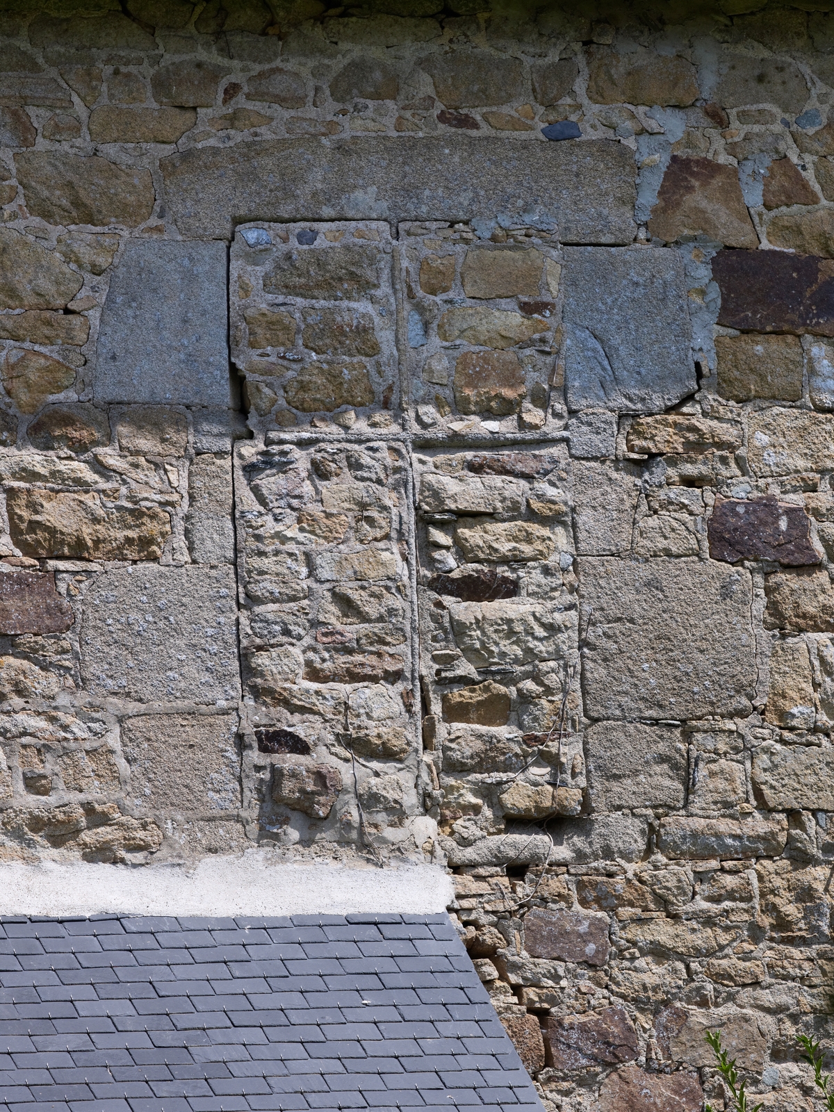 Ploubezre, Le Launay : manoir, élévation postérieure orientée vers l'ouest, détail d'une fenêtre muréeImmatriculation