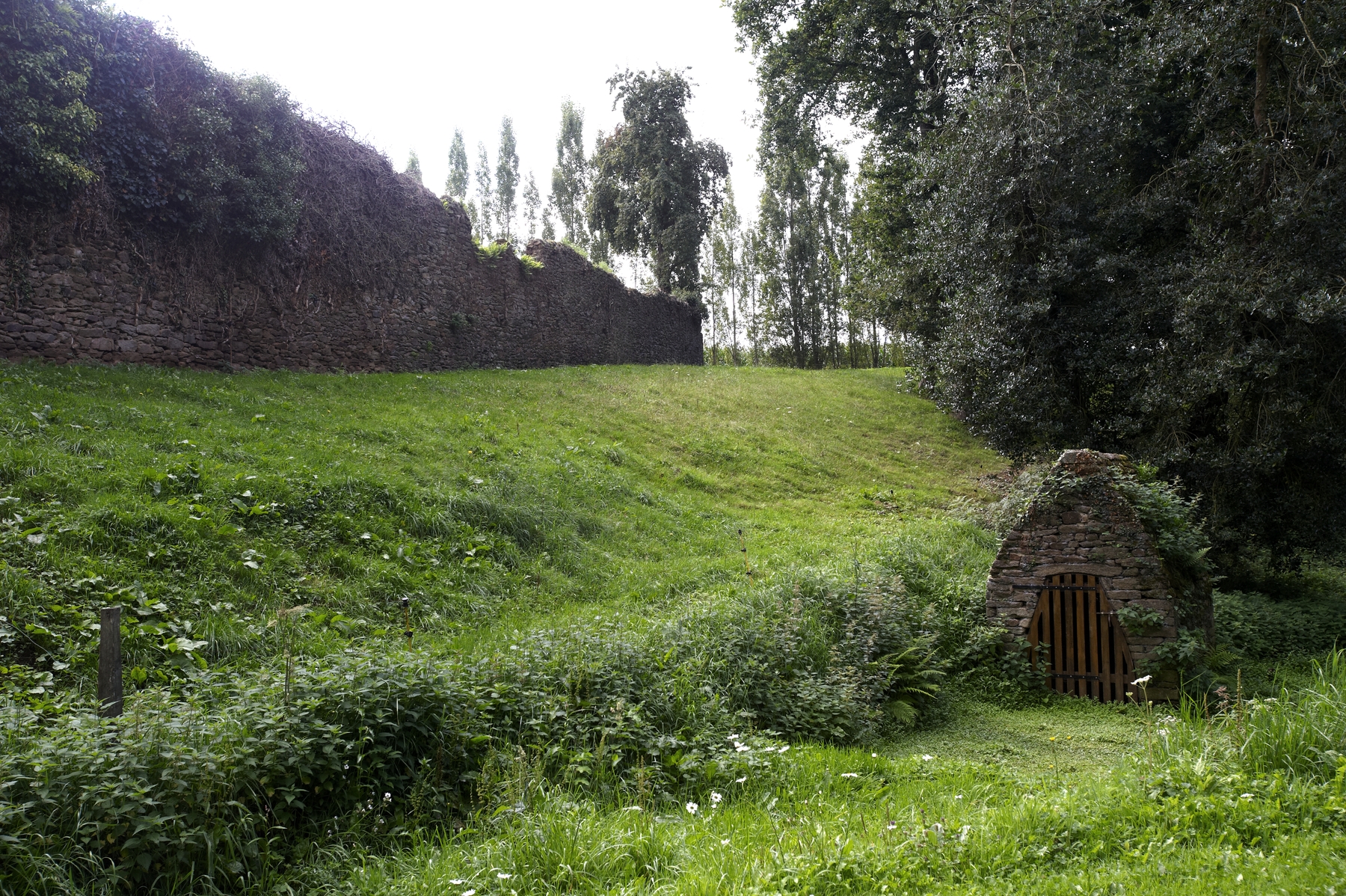 La fontaine et les vestiges du mur délimitant le domaine de la Herviais, vue de la voie publique.Immatriculation