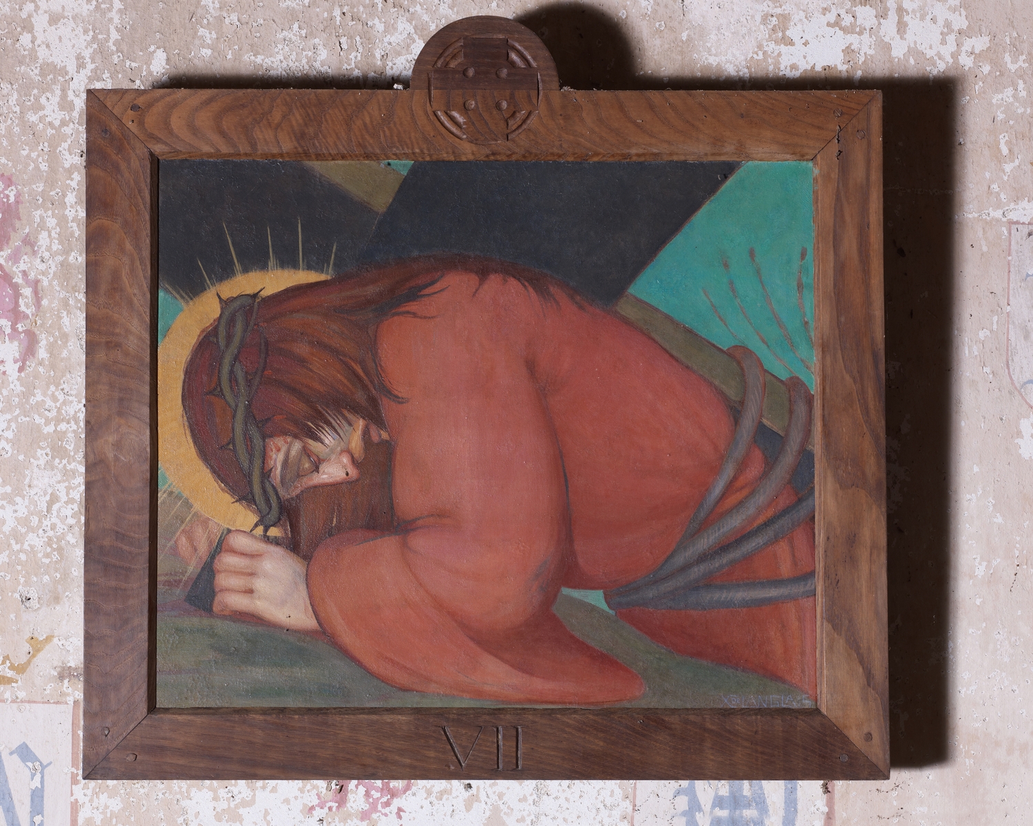 Trémel, le bourg : église paroissiale Notre-Dame, vue intérieure, Chemin de Croix (VII : "Jésus tombe pour la deuxième fois"), œuvre de Xavier de Langlais (1935)Immatriculation