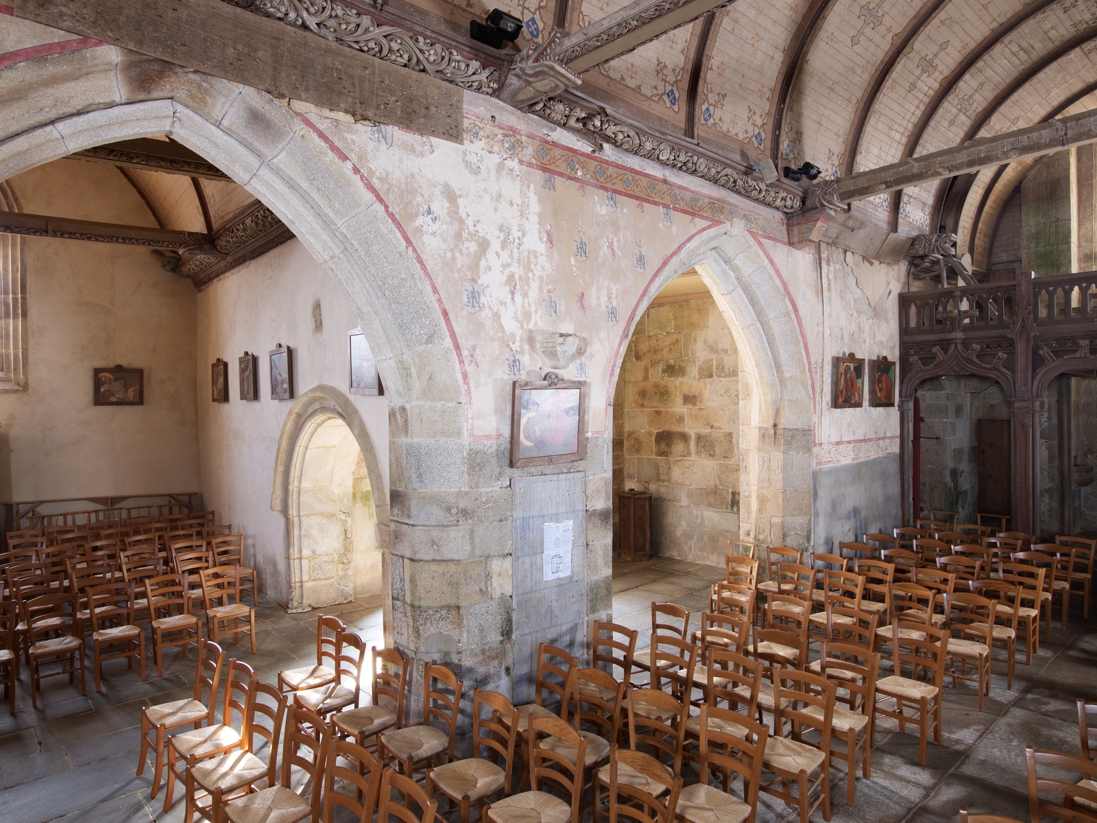 Trémel, le bourg : église paroissiale Notre-Dame, vue intérieure, détail de la nef vers le sudImmatriculation