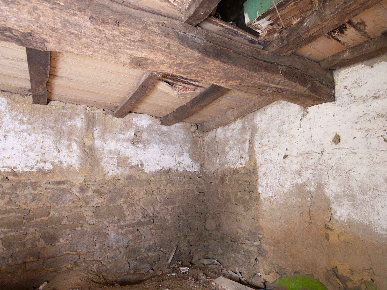 Trémel, Louc'h : ferme de type à avancée centrale, vue intérieure, étable située à l'extrémité nordImmatriculation