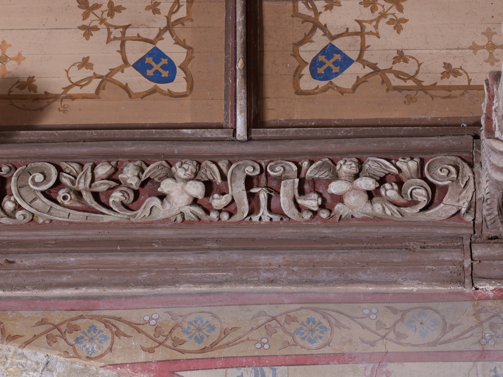 Trémel : église paroissiale Notre-Dame, vue intérieure, sablière sculptéeImmatriculation