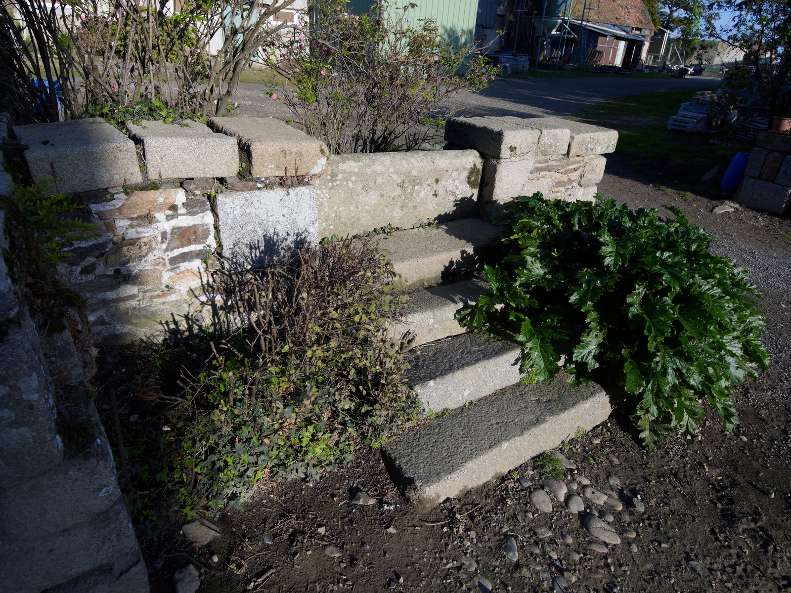 Vestige du muret de séparation avec échalier construit entre la cour et l'ancienne aire à battreImmatriculation