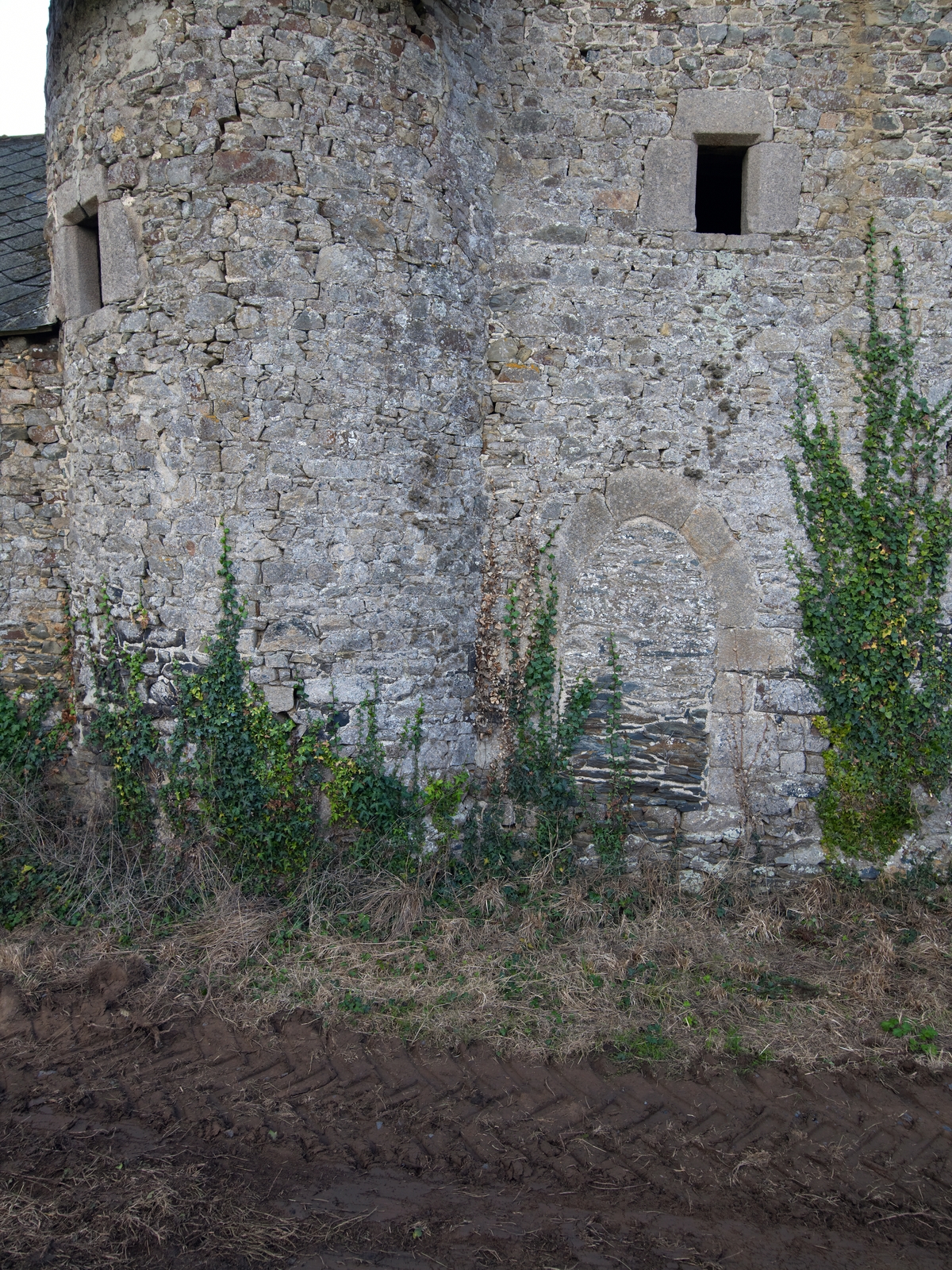 Ancienne métairie. Façade nord-est. Détail de la porte arrière bouchée et de la tour d'escalier en demi hors-oeuvreImmatriculation