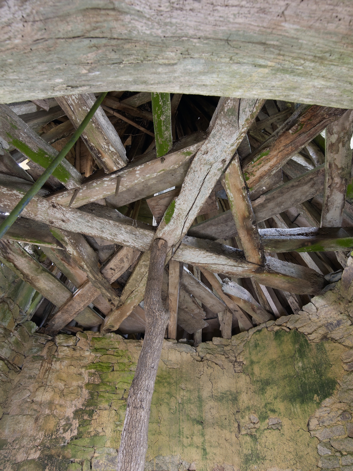 Trémel : manoir de Kermerzit, vue intérieure, tour nord, charpente à enrayureImmatriculation