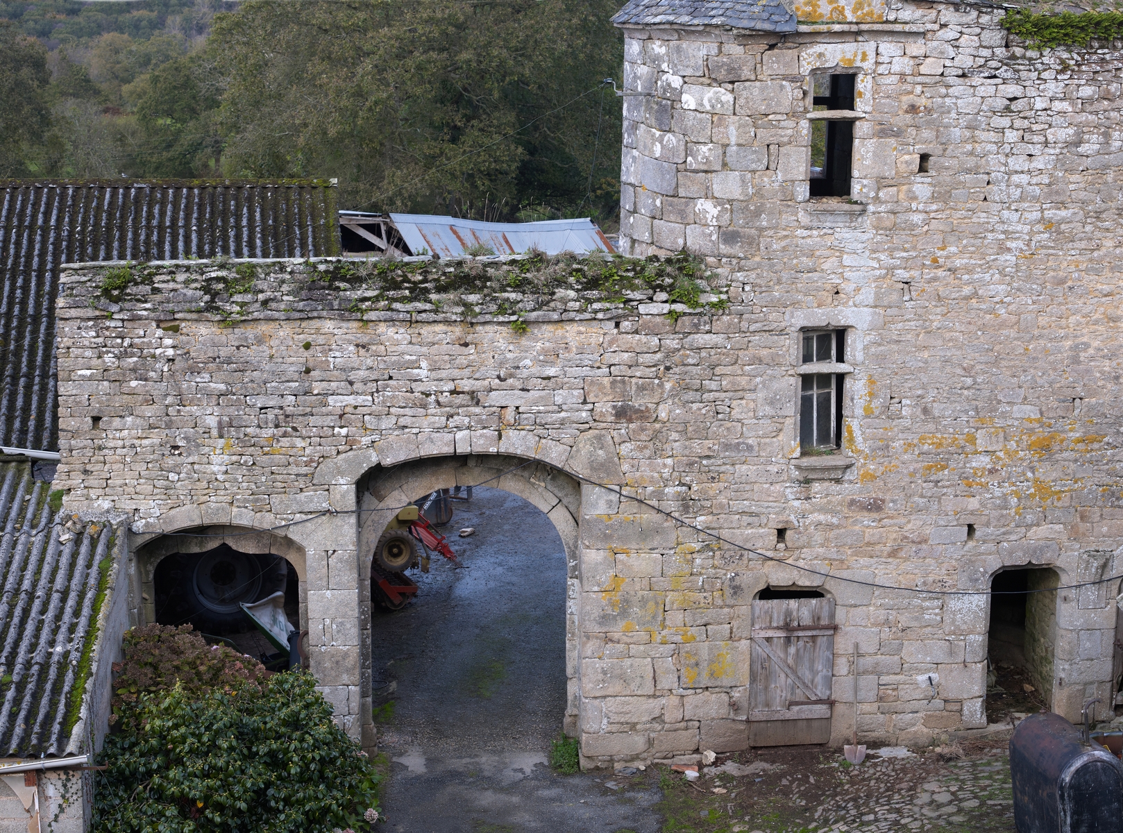 Trémel : manoir de Kermerzit, revers des portes piétonne et cochère et de la tourImmatriculation