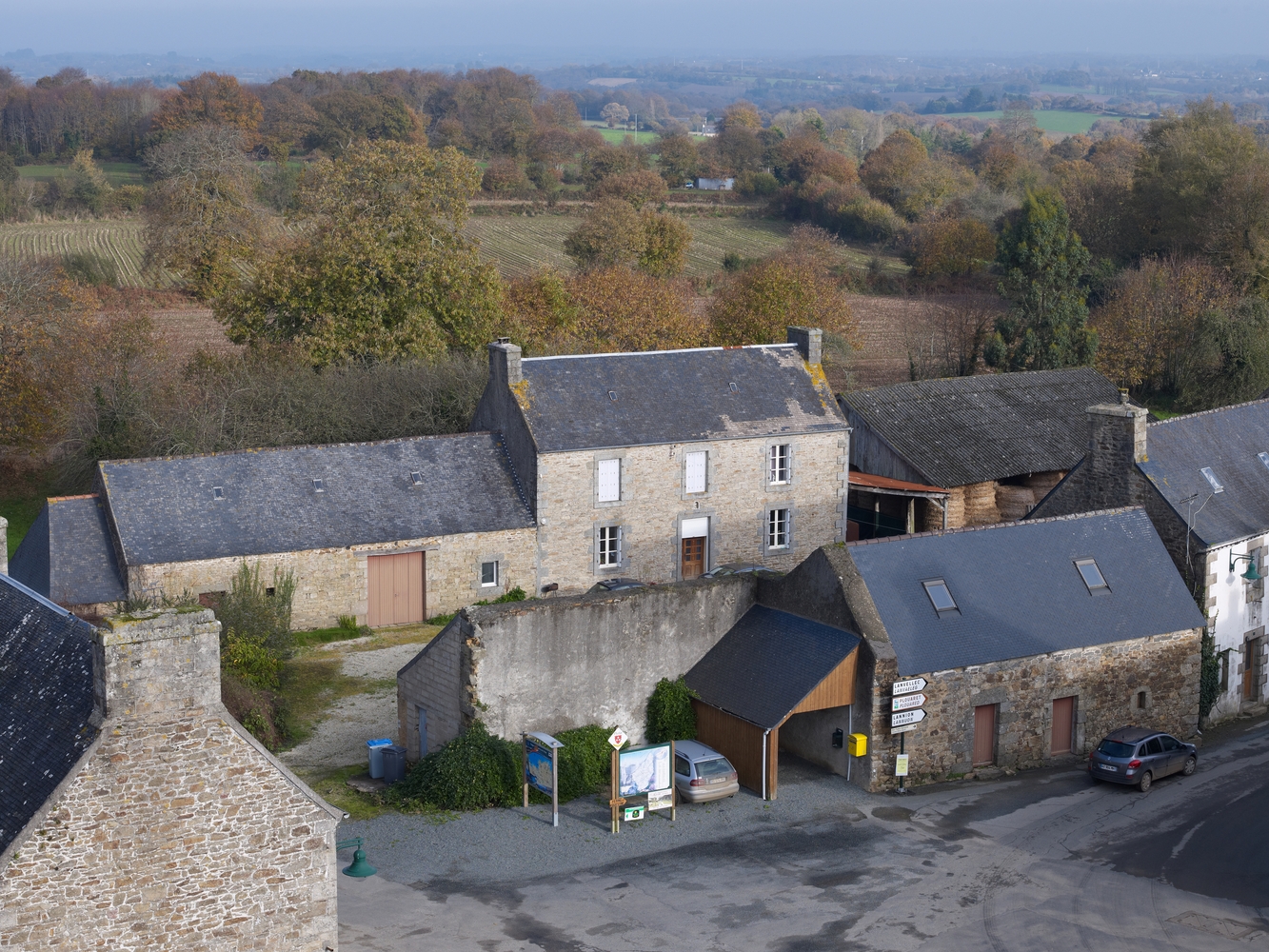 Plufur, le bourg : vue générale vers le nord-nord-est depuis le clocher de l'église, fermeImmatriculation