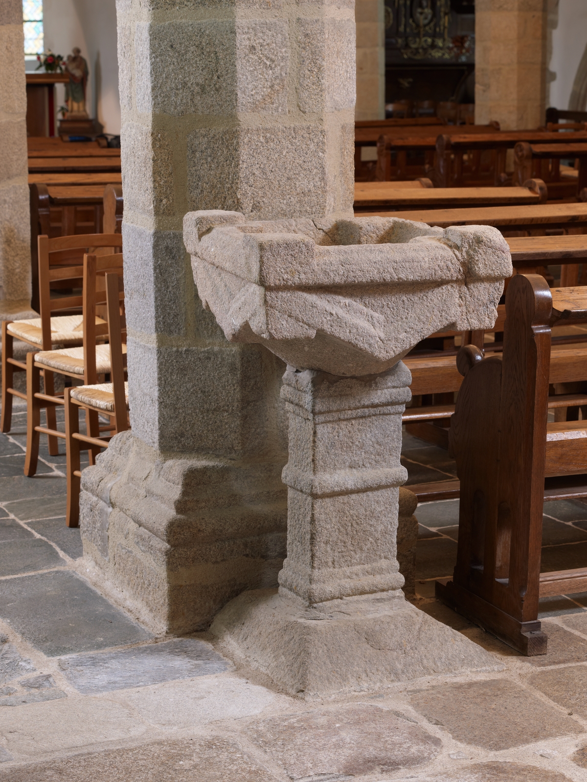 Plufur, le bourg : église paroissiale Saint-Florent, bénitierImmatriculation