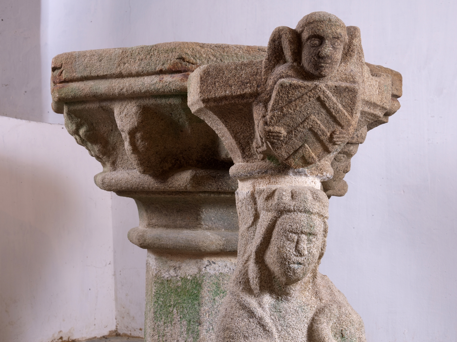Plufur, le bourg : église paroissiale Saint-Florent, fonts baptismaux datables du 16e siècleImmatriculation
