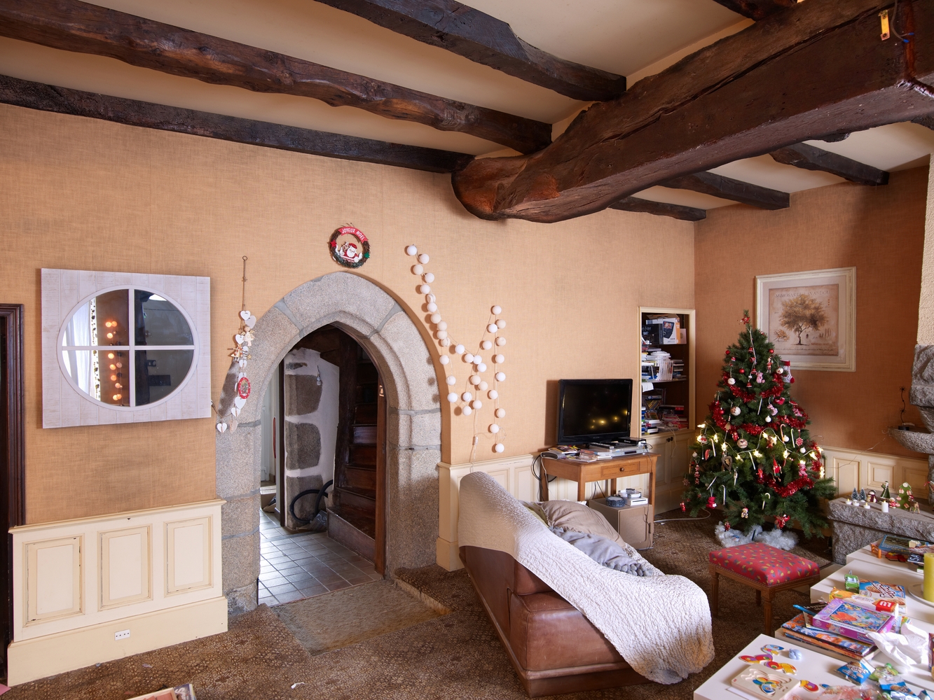 Rez-de-chaussée. Porte en tiers point ouvrant sur la tour d'escalierImmatriculation