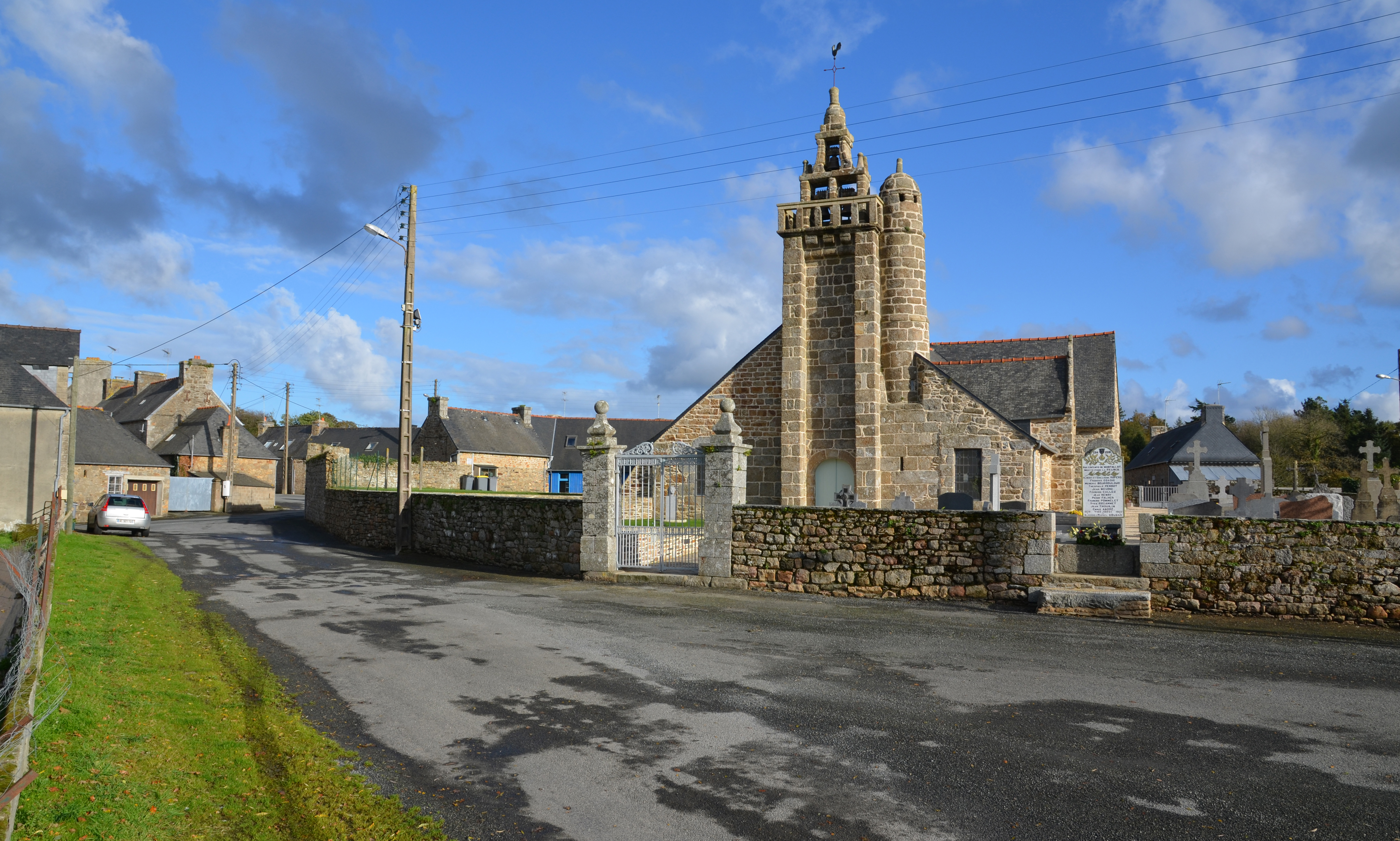 Mantallot : l'église paroissiale Saint Médéric et le bourg, vue générale depuis l'ouest-sud-ouestImmatriculation