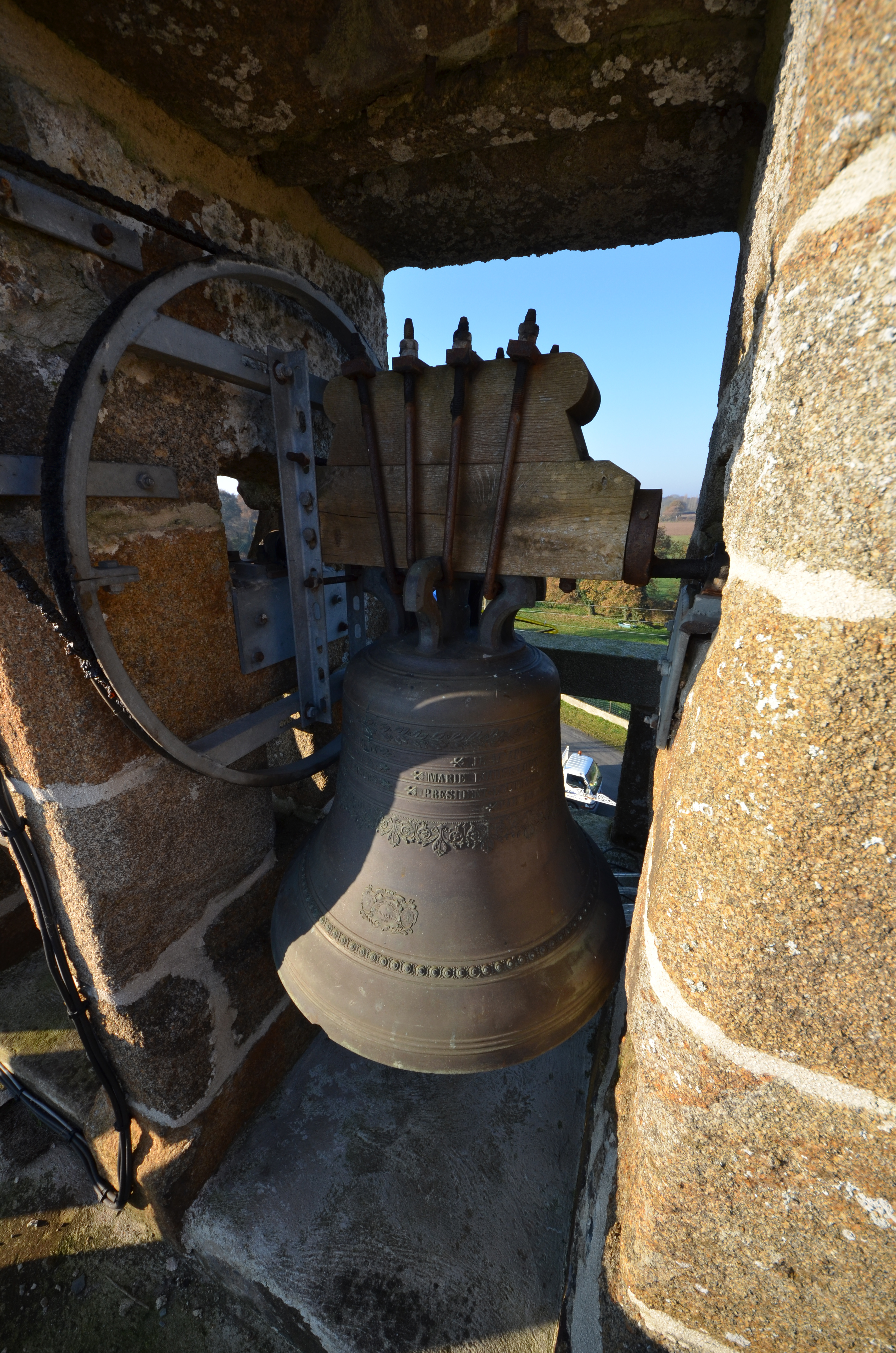Mantallot, le bourg : église paroissiale Saint Médéric, clocher, chambre basse des cloches, clocheImmatriculation