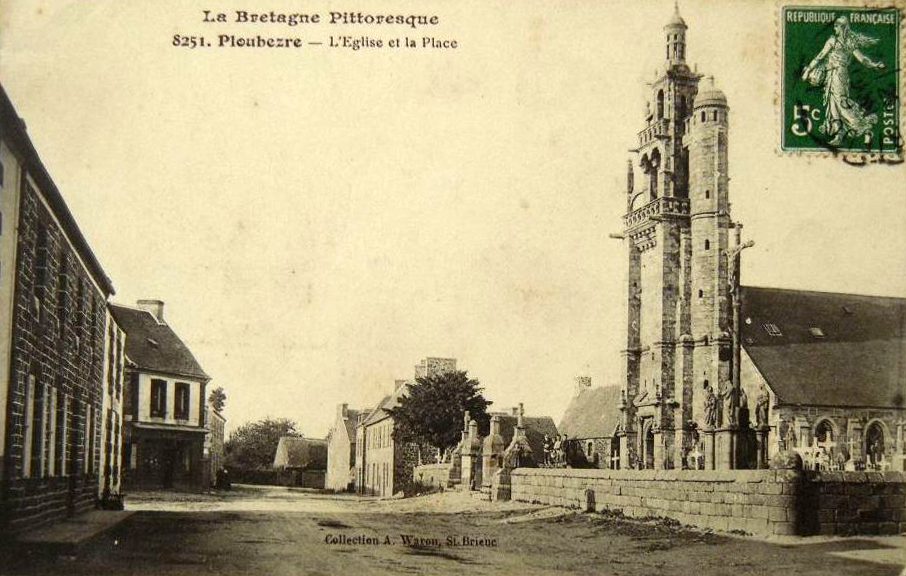 Ploubezre : le bourg et l'église paroissiale, vue générale depuis le sud, carte postale (collection particulière)Immatriculation