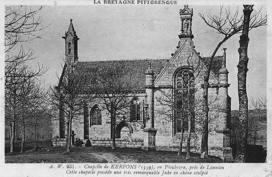 Ploubezre, chapelle de Kerfons : vue générale depuis le sud, carte postale (collection particulière)Immatriculation