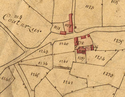 Extrait du cadastre ancien de la commune de Ploubezre, 1826 : ferme de Coat ArzurImmatriculation