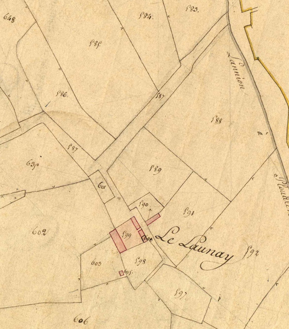 Extrait du cadastre ancien de la commune de Ploubezre, 1826 : manoir de Le LaunayImmatriculation