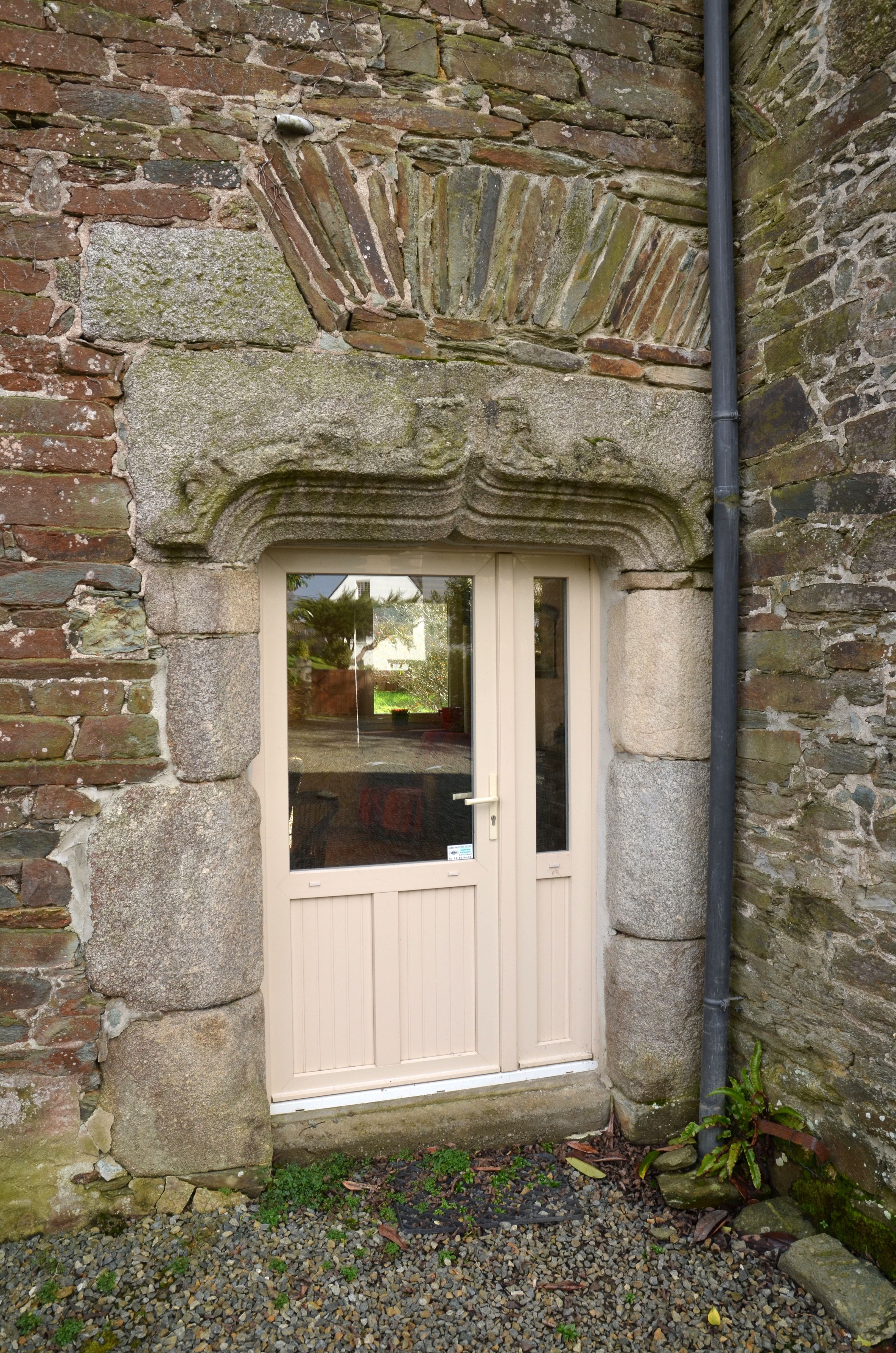 Ploubezre : manoir de Keranroux, élévation nord, détail de la porte ornéeImmatriculation