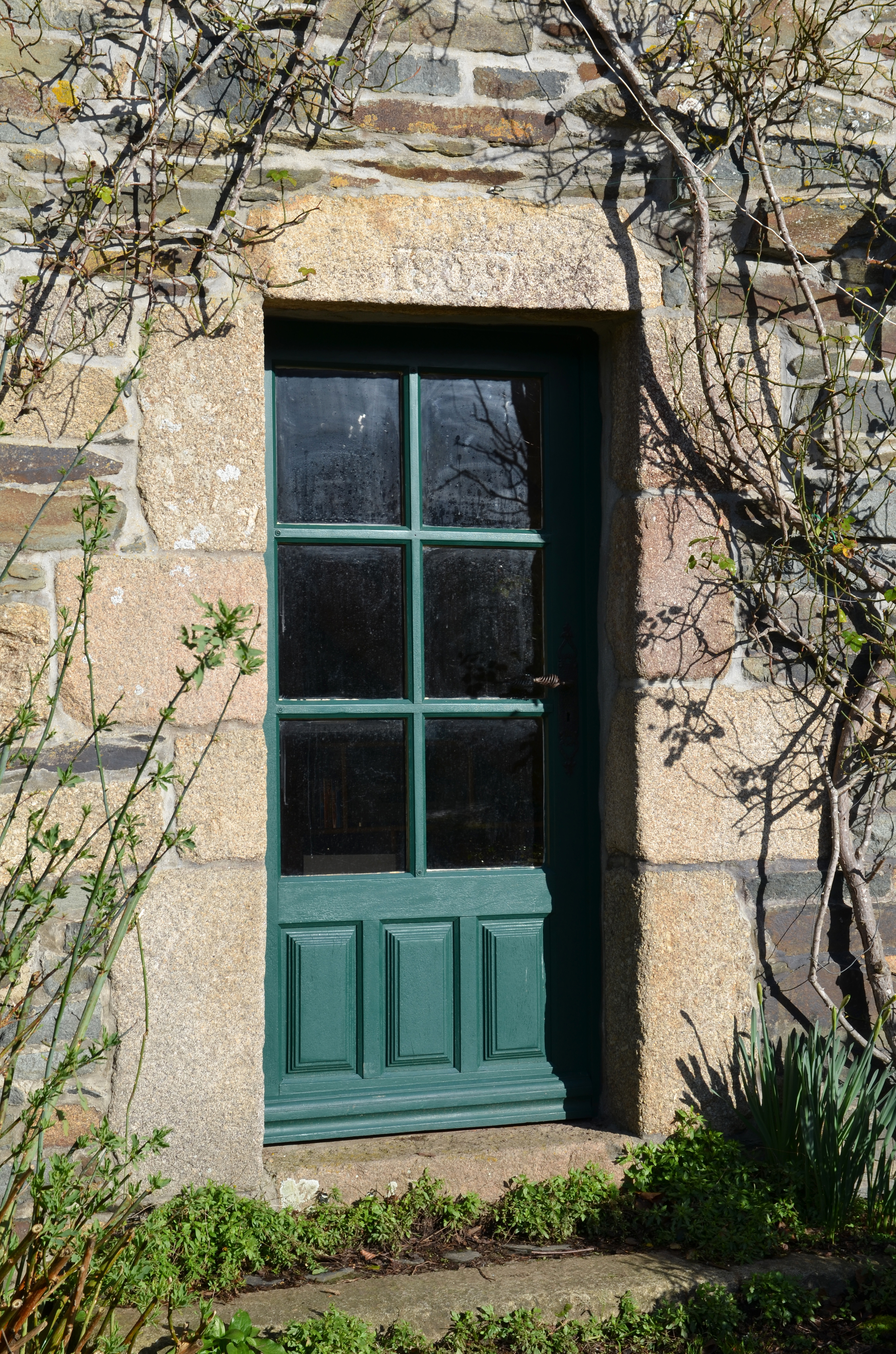 Ploubezre : manoir de Rosalic, élévation antérieure orientée vers l'ouest, détail de la porte du logis sud datée 1809Immatriculation