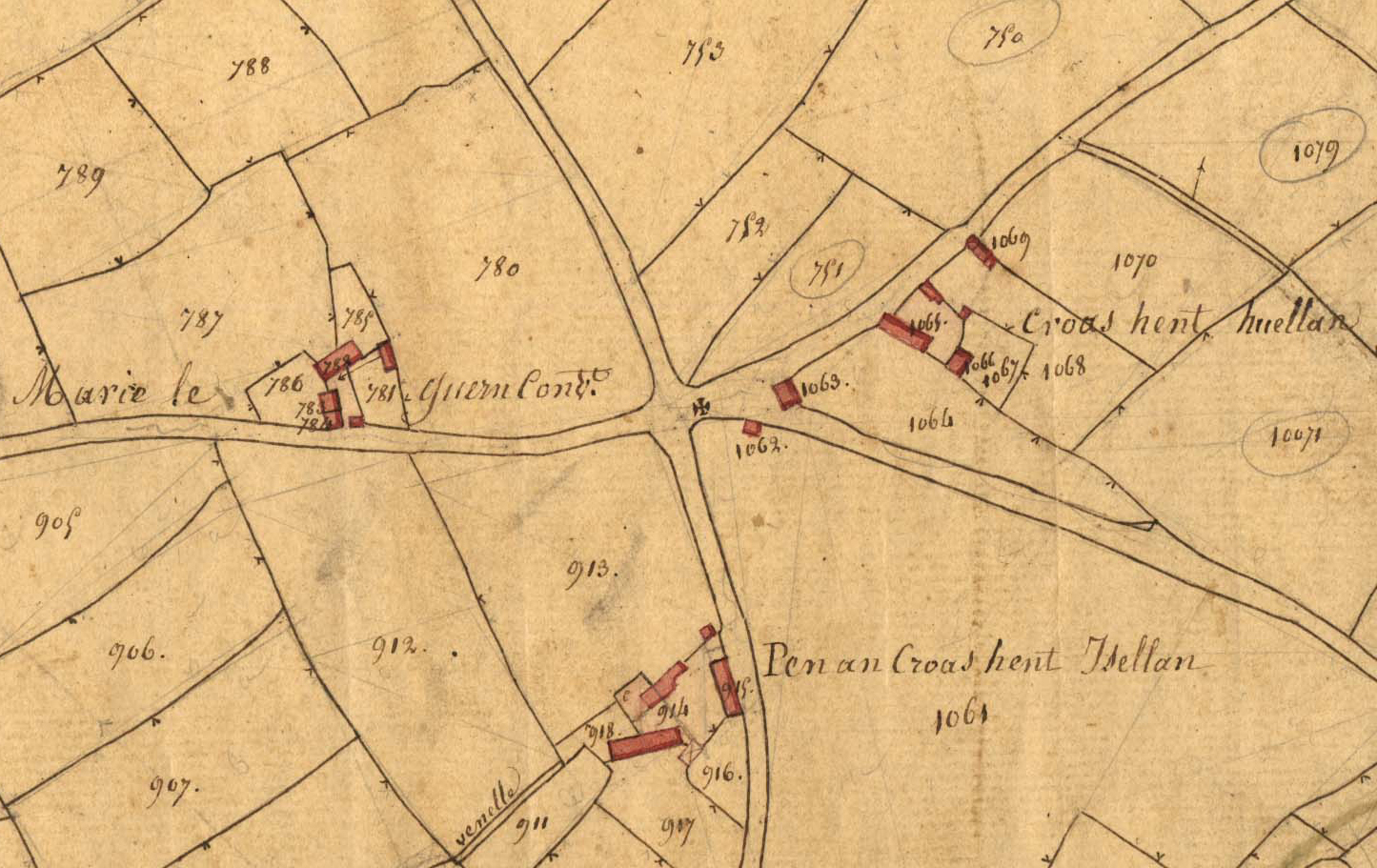 Extrait du cadastre ancien de la commune de Ploubezre, 1826 : Croas HentImmatriculation