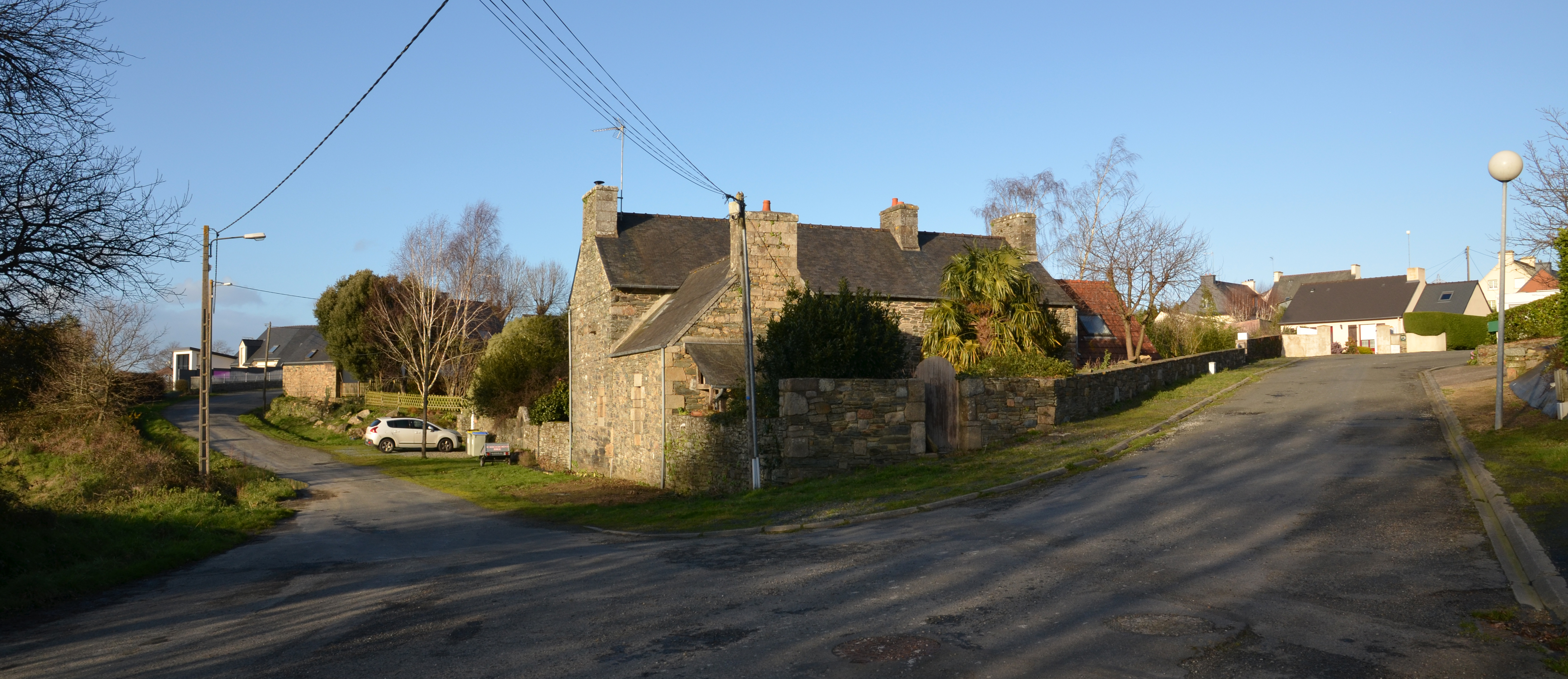Ploubezre, Kerzévean, rue de Kerbiriou : ancienne ferme aujourd'hui maison, élévation sud. Elle délimite la bordure extérieure d'un lotissementImmatriculation