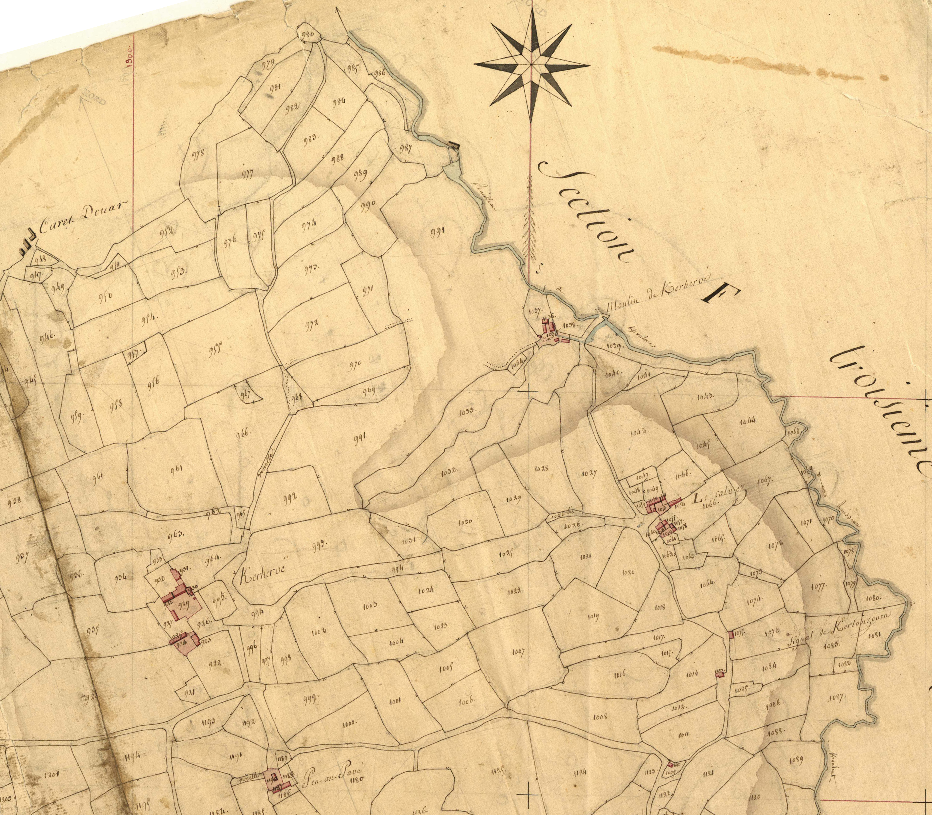 Extrait du cadastre ancien de la commune de Ploubezre, 1826 : KerhervéImmatriculation