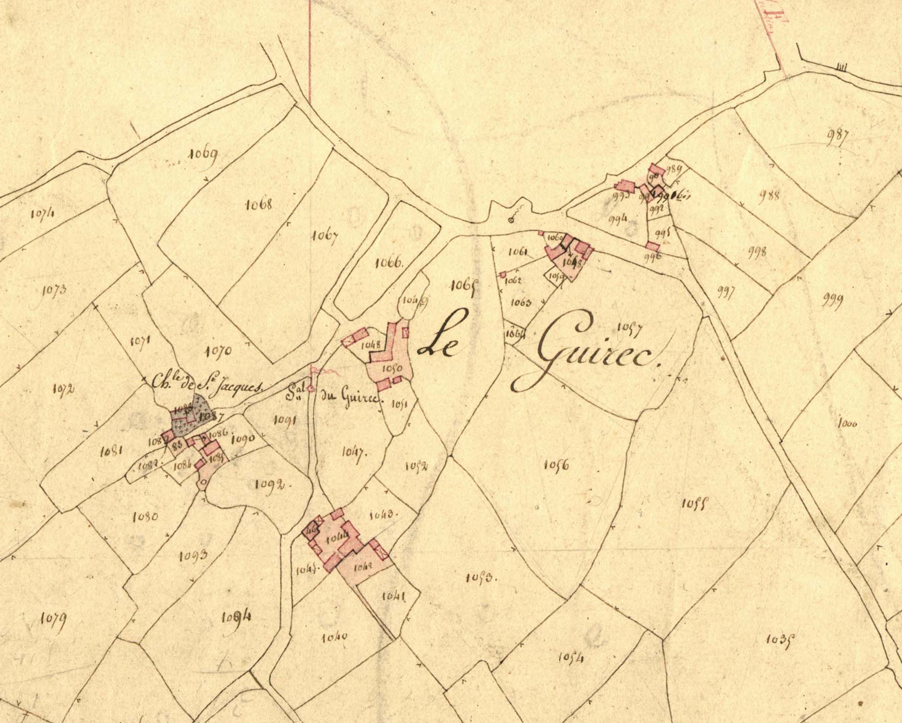 Extrait du cadastre ancien de la commune de Ploubezre, 1826 : Le Guirec ; chapelle Saint-JacquesImmatriculation