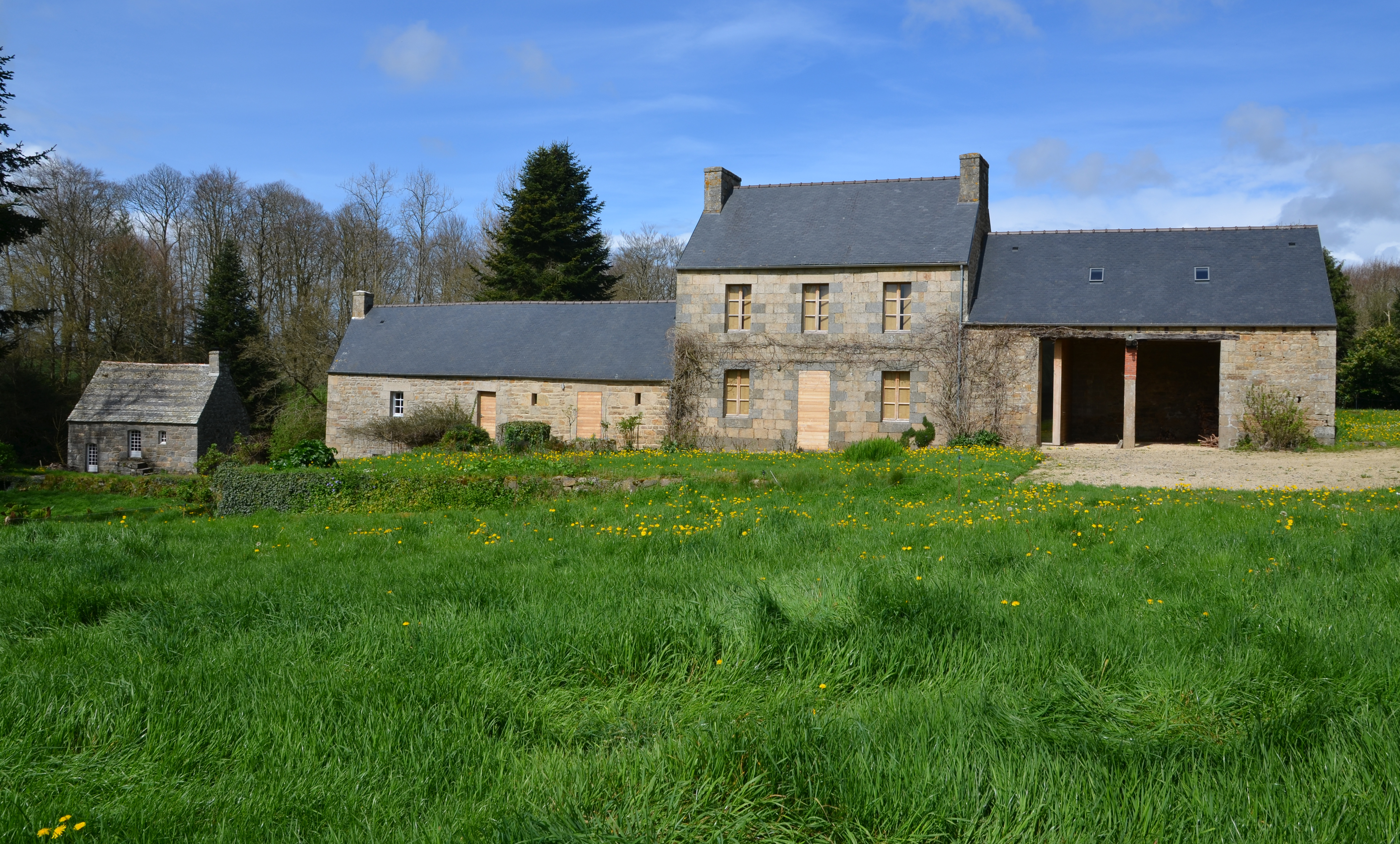 Ploubezre, Keryanaouen : moulin à eau sur un petit affluent du ruisseau de Kerlouzouen et ferme, vue générale depuis le sud-estImmatriculation