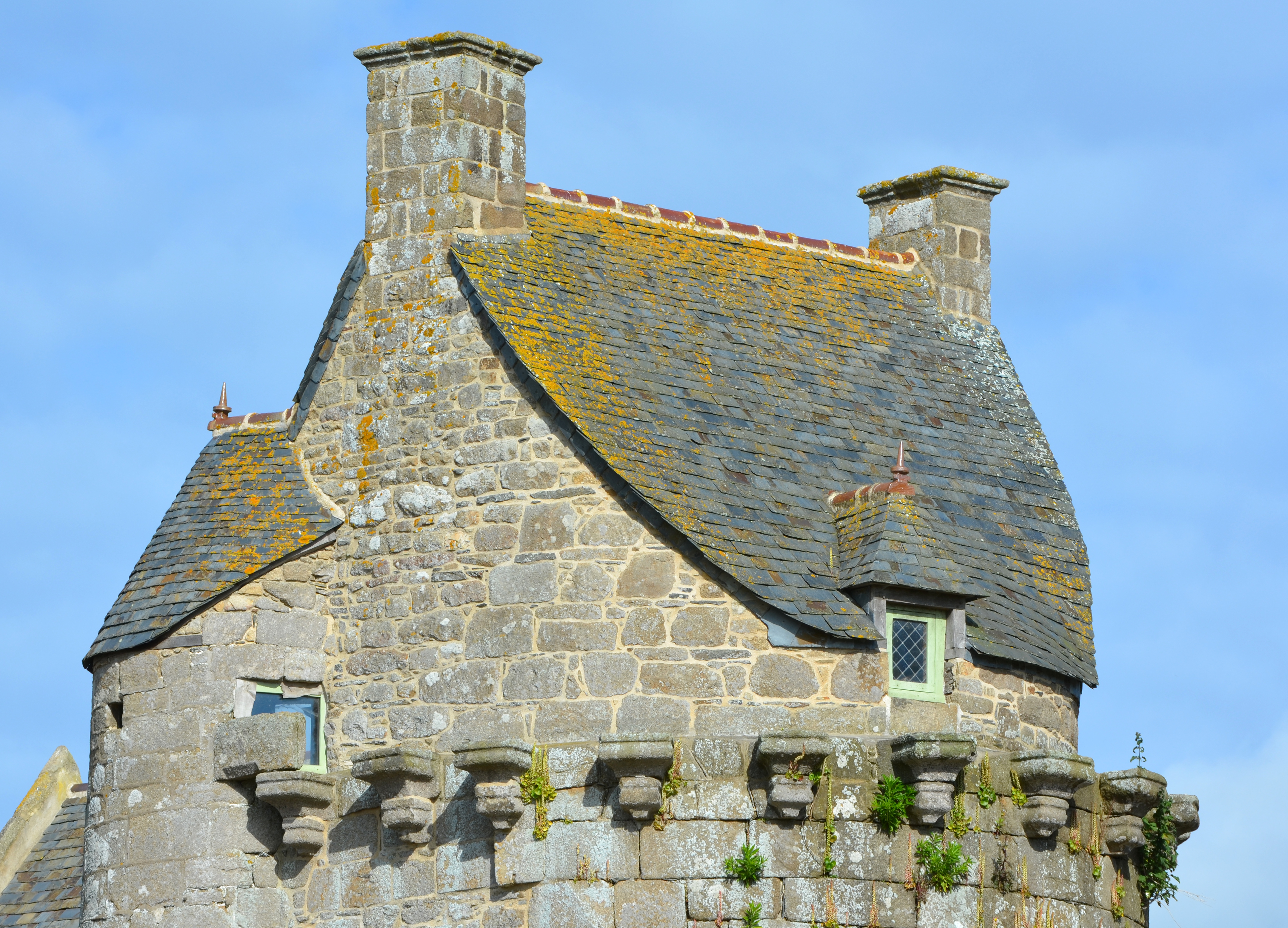 Ploubezre : manoir de Kerhervé, tour, vue de détail du corps de garde ou chambre hauteImmatriculation