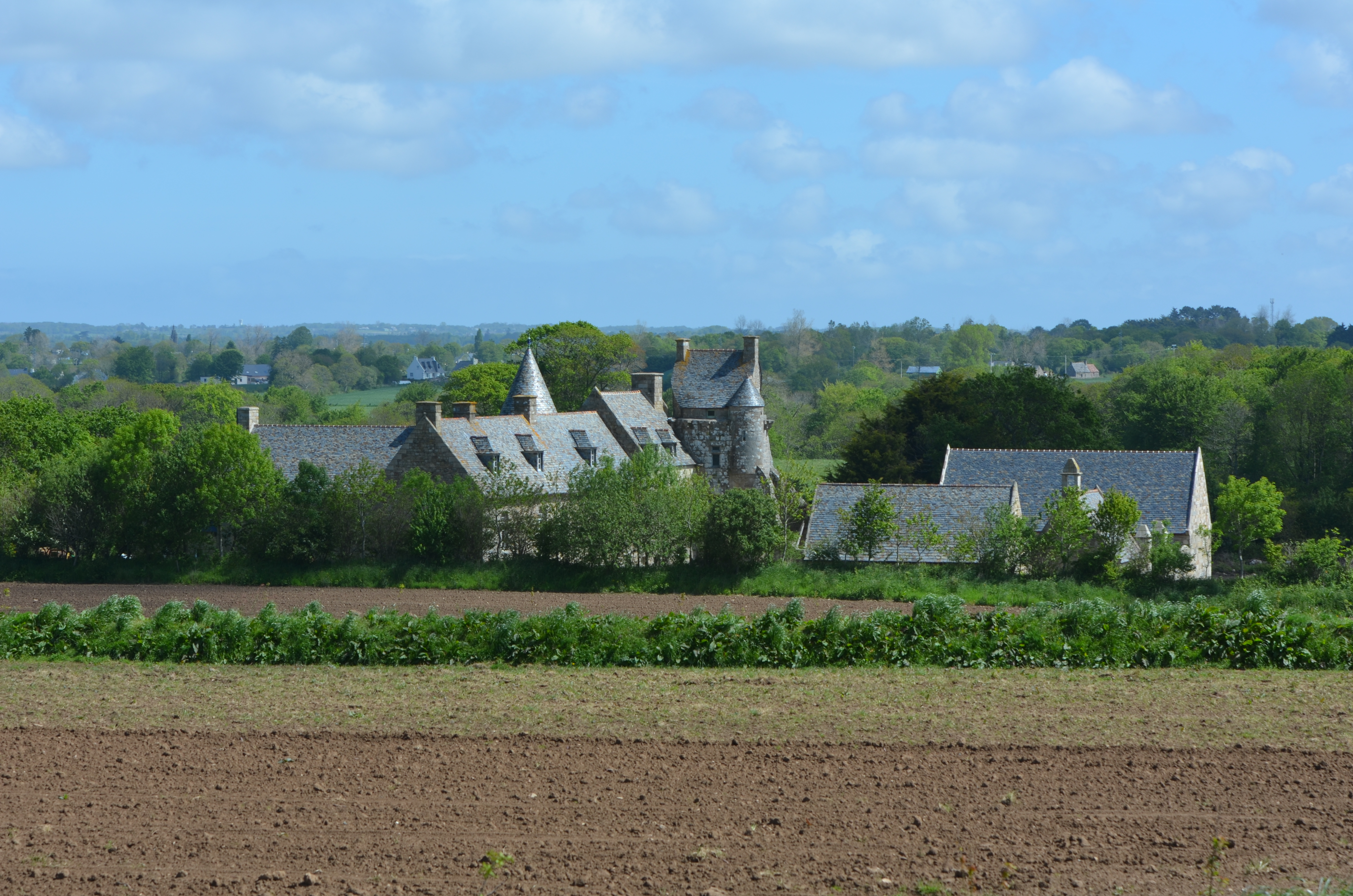 Ploubezre : manoir de Kerhervé, vue de situation depuis l'ouest-sud-ouestImmatriculation