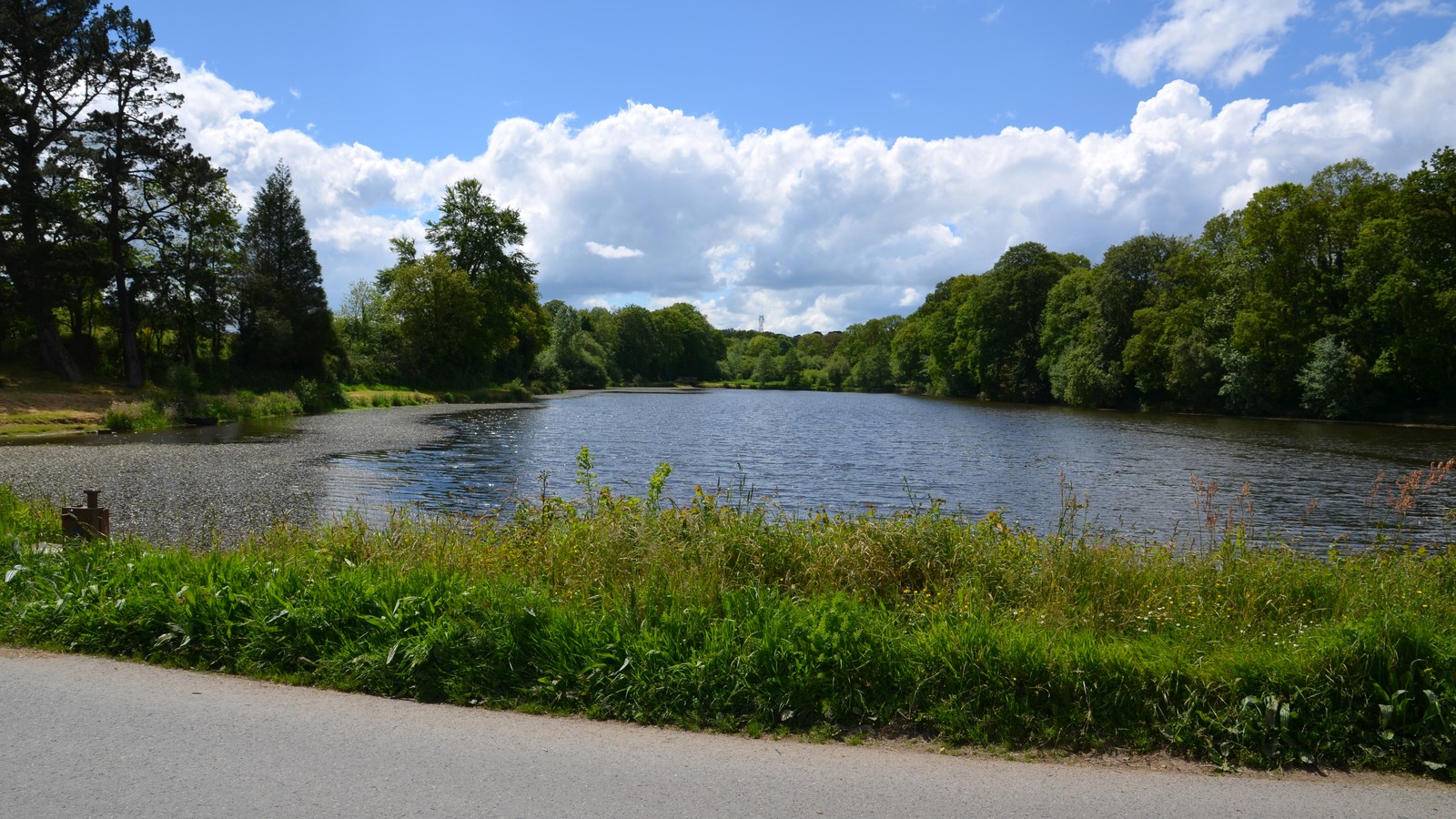 Prat : étang de Poulloguer, vue générale depuis la route-digue du moulin à eauImmatriculation